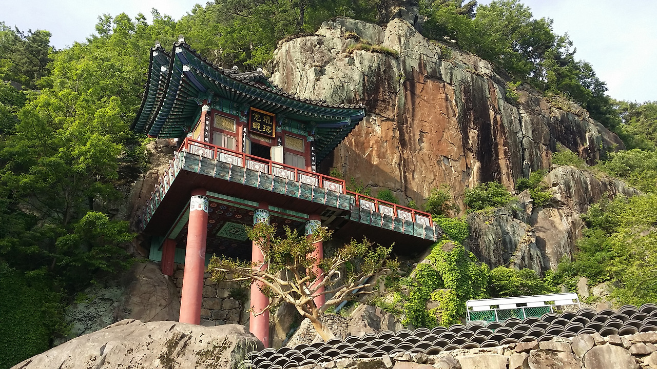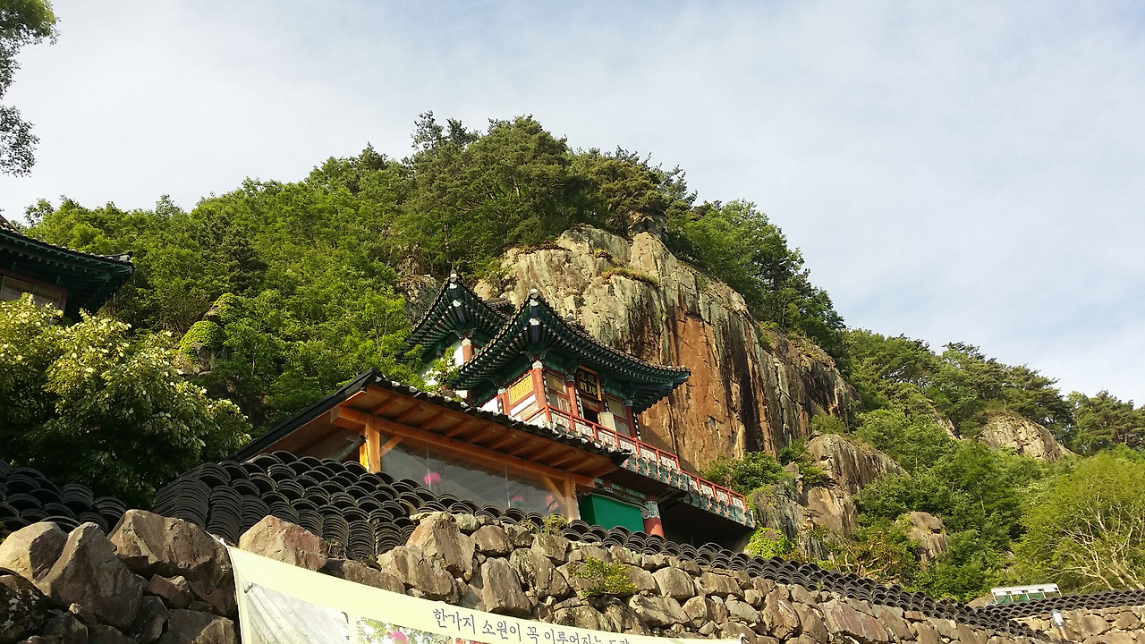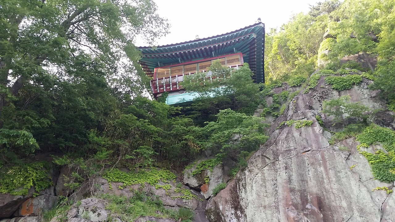 잠깐을 올라가면서 깜짝 놀랐다. 이런 곳에 이런 암자가 있다는 것도 놀랍다. 옛적에 어떻게 이곳에 암자를 세울 생각을 했을까. 아무리 경치 좋고 산세가 좋아도 이곳에 암자를 세우는 것은 반칙이다. 그런데 그곳에 버젓이 암자가 높이 서있다. 암자만 달랑 하나 있는 것이 아니다. 공양간과 또 다른 암자가 그 위에 다시 또 서있다.