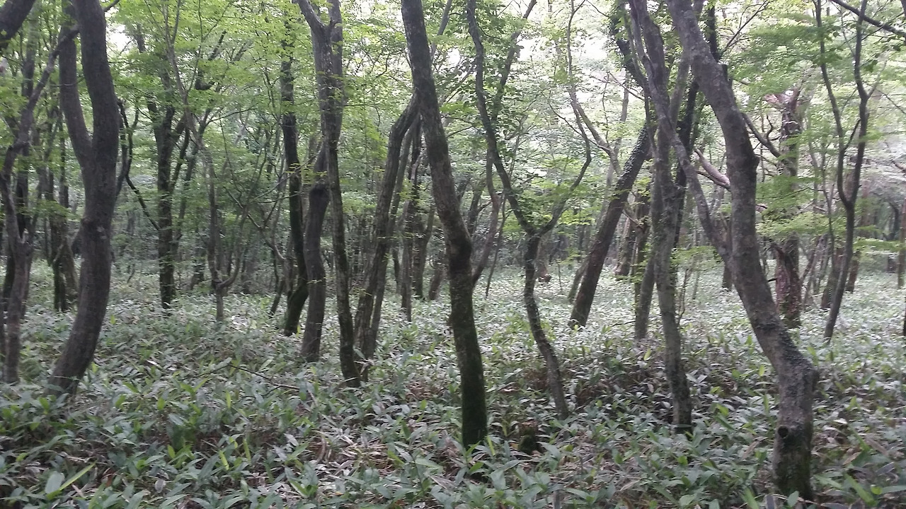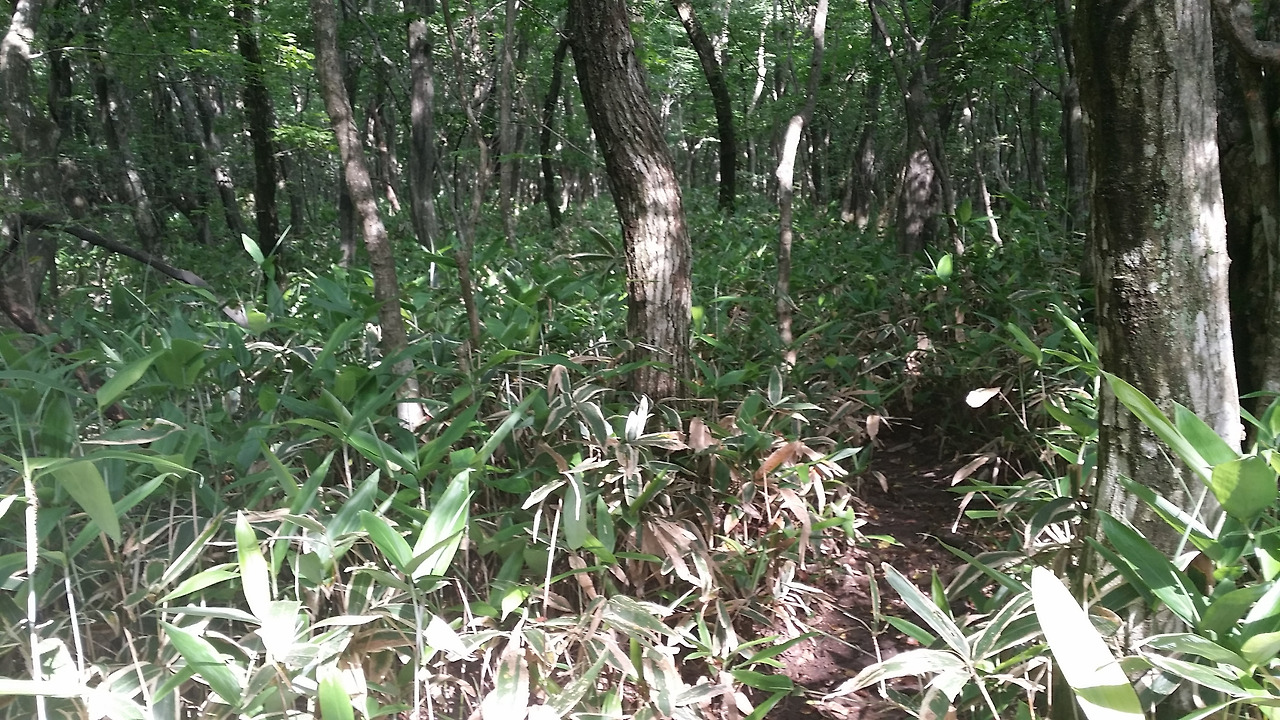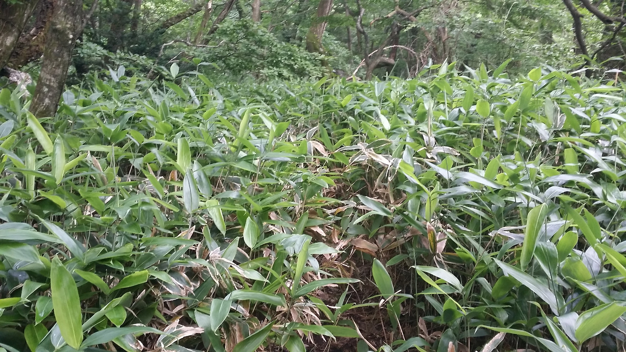 비탈을 따라 정상을 향하니 조금씩 조릿대의 분포가 옅어진다. 마지막으로 허리춤을 넘는 조릿대 대신에 키가 크지는 않지만 숲다운 풀과 나무들이 자리하기 시작한다. 조릿대가 오지 못하는 곳인가. 아니면 조릿대가 물러나는 중인가. 구분이 되지 않는다.