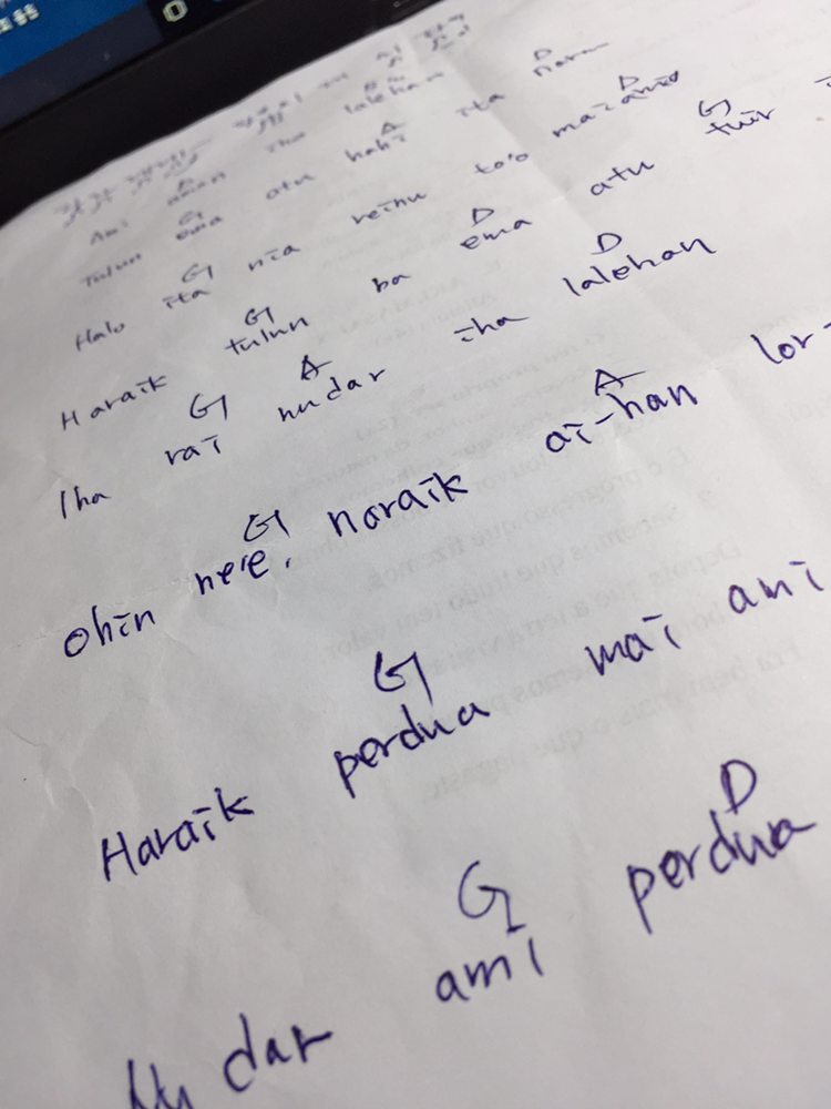 우리 학교가 미사 성가대를 할 차례가 다시 돌아왔다. 지난 2월 이후 4개월만이다. 이번에도 반주를 하게 되었다. 악보도 없이 그저 가사만 써서 아이들에게 나눠주고 아이들이 노래를 부르기 시작하면 내가 알아서 맞추는 식으로 연습을 했다. 선생님들은 내가 듣고 어떻게든 따라 치는 게 신기하지도 않은 모양이다. 한국에서는 굉장히 신기해하는 기술인데도 말이다. 어쨌든 가사만 받아들고 코드를 따서 얼추 노래에 맞춰서 반주를 할 수 있게 됐다.