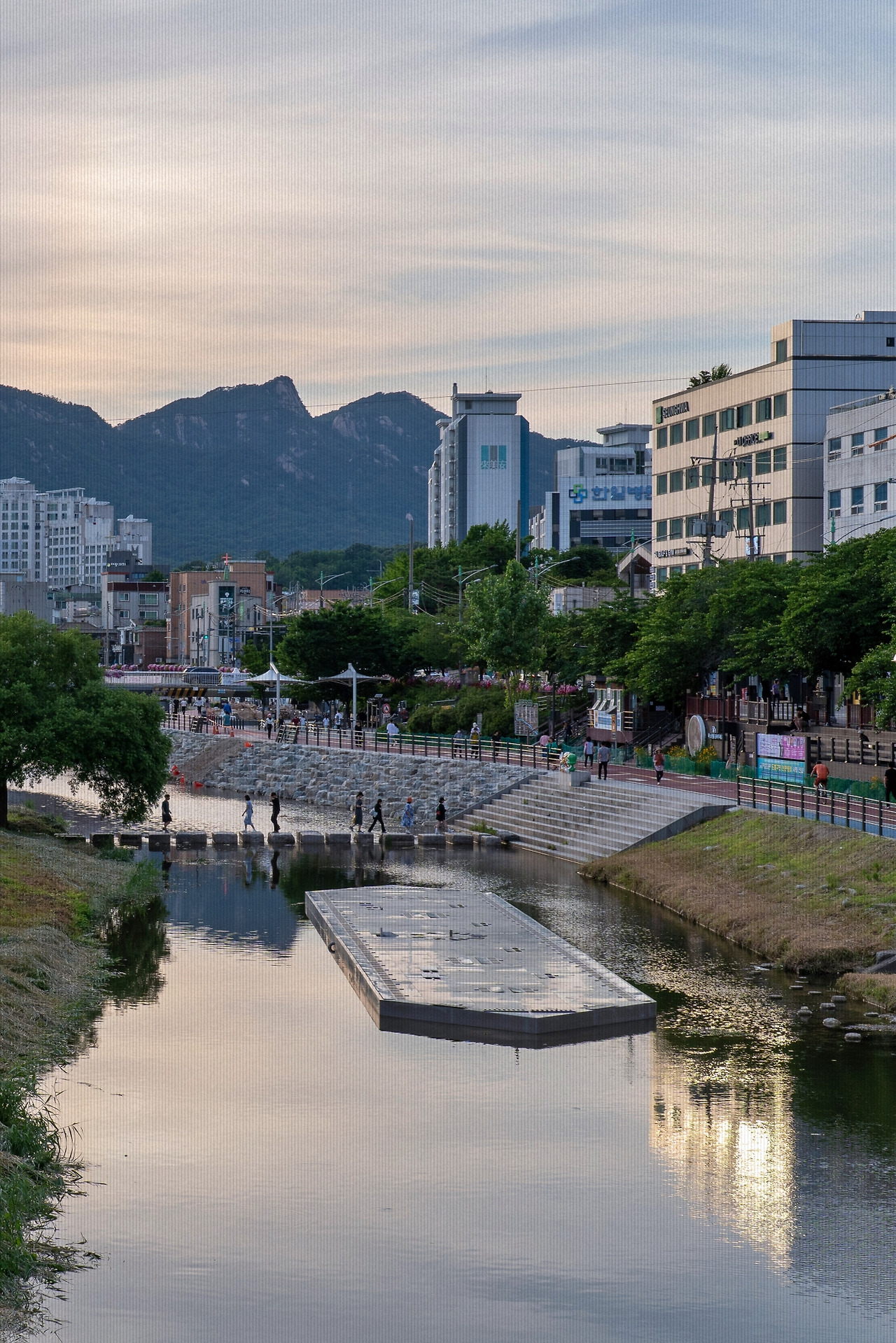 이른 저녁밥을 먹고 소화나 시킬 겸 천변 길을 걷는다. 물녘 징검돌을 건너는 이들 중에는 퇴근 후 귀가하는 직장인들도 있을 것이다. 일과를 마쳤는데도 여전히 해가 보이고, 스마트폰의 다크 모드 자동 변환 기능은 작동하기 전이다. ‘아직 남아 있다, 나를 위한 하루가’라는 생각이 절로 드는 밝은 퇴근길. 다른 계절에 비해 여름의 정시 퇴근은 그 희열감이 최대치였던 것 같다. ⋯⋯출퇴근하던 내 나날이 저 다릿돌 위의 사람들처럼 멀리서 오가고는 이내 사라진다. 한쪽에서는 어린이들이 신나게 물놀이하는 중이다. 역시나 그곳에도 까마득한 내 유년기가 첨벙첨벙 떠올랐다 가라앉기를 반복한다. 어디를 봐도 다 내 모습이다. 내가 나를 구경하는 시선이 가무러질 무렵, 여름의 짧은 밤이 찾아온다. 집으로 돌아갈 시간이다.