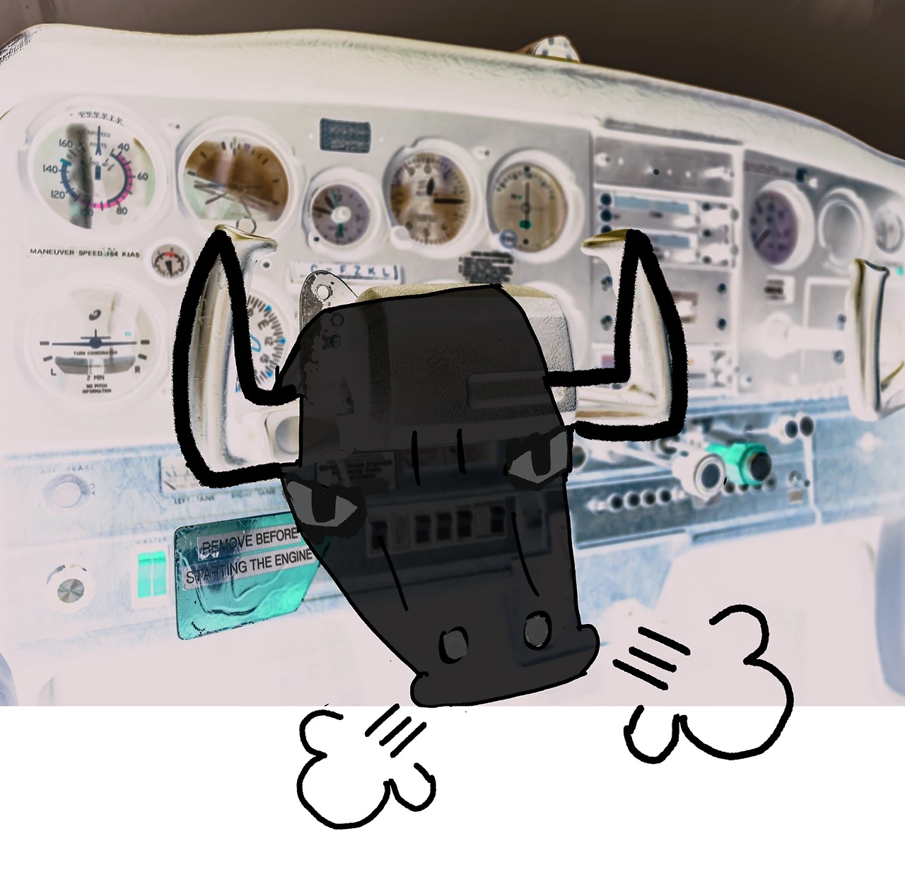 흔들리는 비행기에 놀란 푸름은 왼손으로 성난 황소 뿔을 부둥켜 잡았다. 안 되겠는지, 양손으로 급하게 잡았다. 조종대는 앞 뒤로 거칠게 씨근거리며 움직이고 있었다. 잔뜩 힘이 들어간 팔목은 긴장되어 단단해졌다. 팔뚝의 촘촘한 근육은 마치 피아노 줄 같이 움직이기 시작했다.