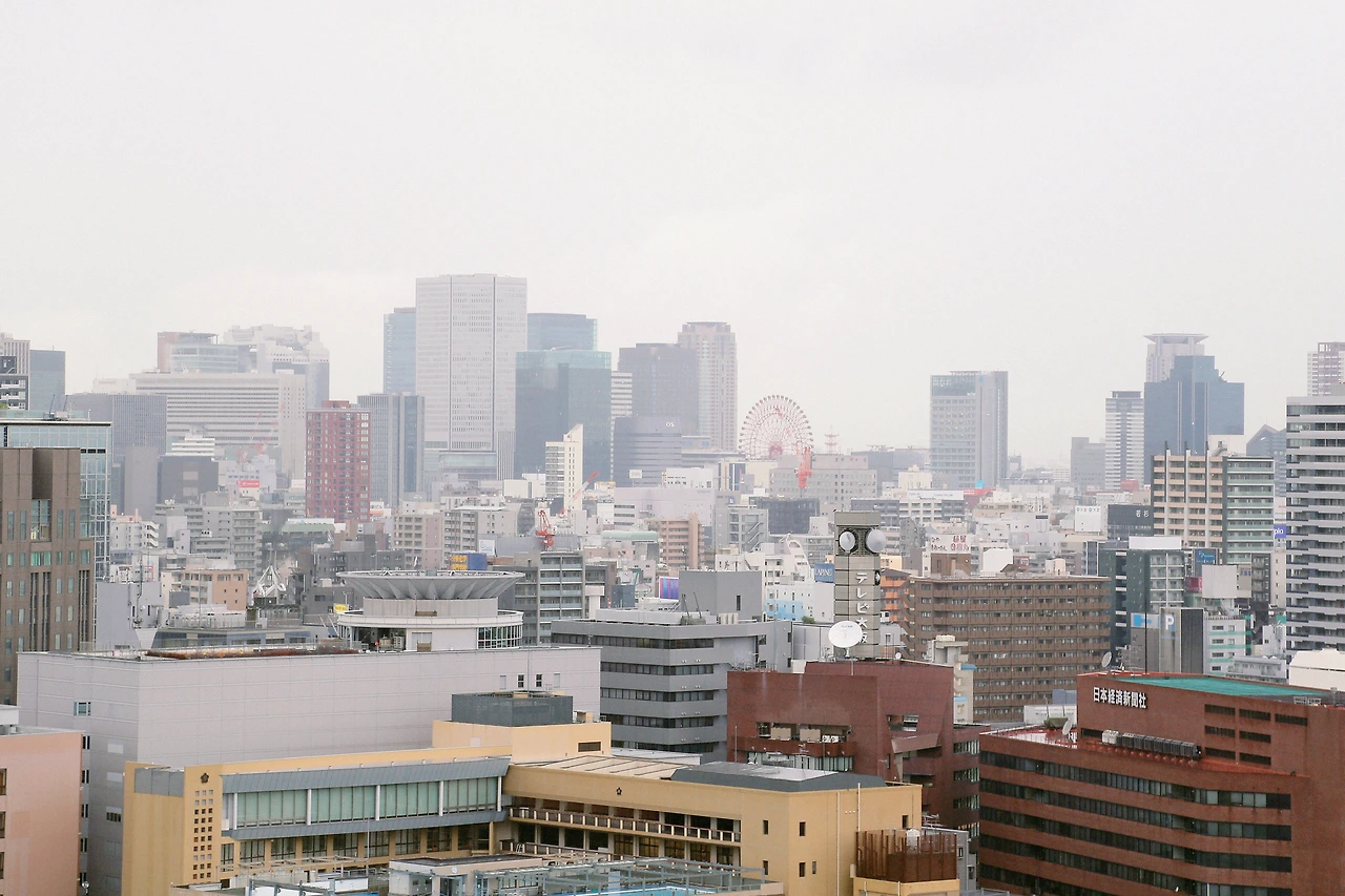 성 내부는 사진 촬영이 가능한 곳도 있고 가능하지 않은 곳도 있었다. 그래서 내부에서는 아예 촬영을 하지 않았다. 성 위에 나갈 수 있는 공간이 있었다. 덥기도 하고 눅눅해 바람을 쐬고 싶어 밖으로 나갔다. 비를 가려주는 처마도 있고 바람이 살랑살랑 불어 기분이 좋았다. 높은 오사카 성에 올라가서 보니 오사카의 풍경이 눈에 들어왔다. 비를 맞으며 고생고생 걸어온 길도 보였다.