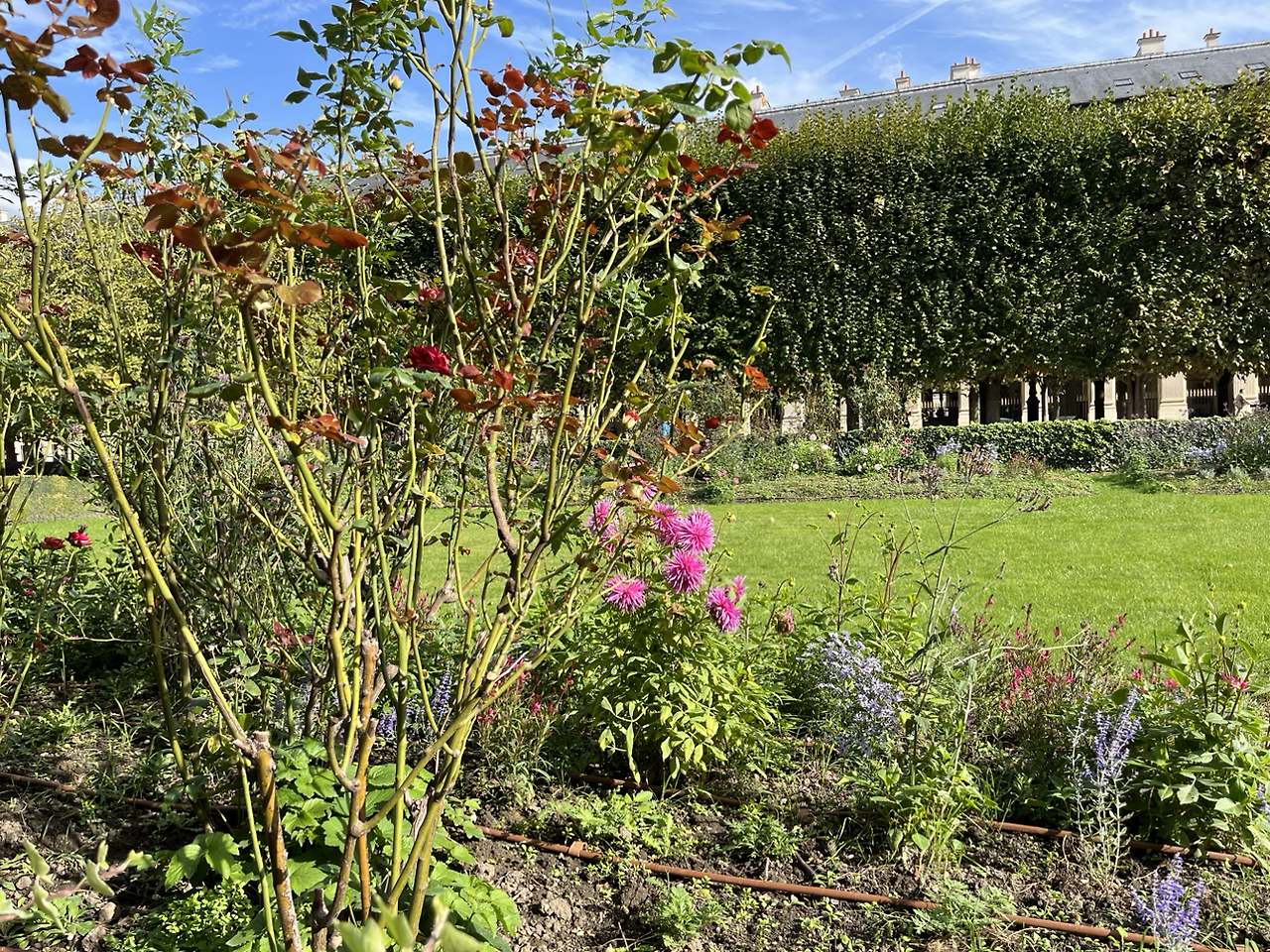 루시와 교회 밖에서 보는것은 처음이다. 나는 지난 여름 이후로 교회를 옮겼고, 내가 한동안 보이지 않자 내게 연락한 것. 팔레 호와이얄에서 만나기로 했다가 다시 찻집에서 만나기로 연락을 나눴다. 나는 약속 삼십분 전에 도착했는데, 오랜만에 찾아간 정원이 알록달록한 그림으로 단장되어 있었다.