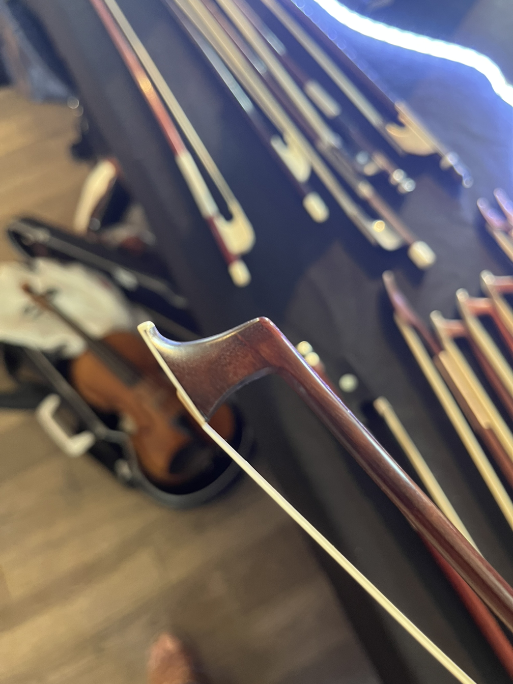 다음주 레슨에서 활 얘기로 혼날까봐 급히 크레그에게 전화해 활 약속 잡았다. 그가만든활 두개와 솔란 시바의 활 하나. 30년정도 차이로 다른 활이었는데, 각지고 가벼운 시바의 활이 더 마음에 들었다. 가격이 예상외로 매우 괜찮았다. 3년전에 그에게 샀던 바로크 활이 좀 무뎌졌다 이야기하니 다른 활로 교체해줄까 물었다. 그의 호의에 놀라고 또 그래보고 싶어 몇개 시도해봤는데 느낌이 별로 안와서 내려놨다. 그러면서 그는 오늘 내일 있는 악기 살롱에 가몀 더 많은 선택권이 있을거라 알려줬다. 3년동안 안 간 활 털도 맡기고 내일 다시 살롱에서 만나기로.