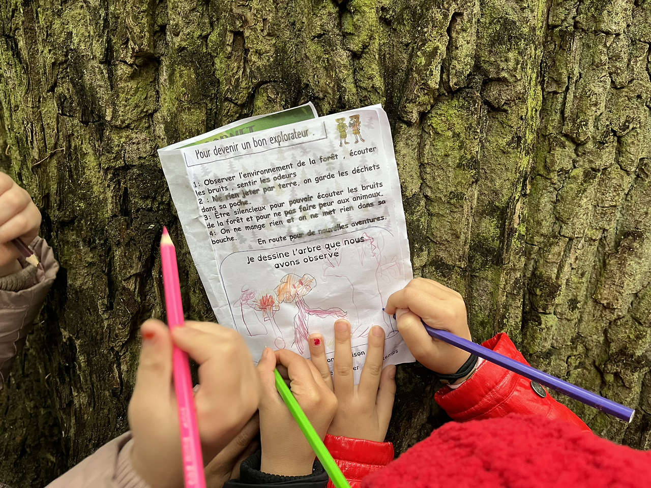 소풍 전날 들뜬 아이처럼 나는 잠을 잘 이루지 못했고, 새벽 세시부터 깨어 비몽사몽한 하루를 보내고 있다. 마침 각 클래스에 담임 포함 두명 이상 도움을 주는 사람들이 있었는데, 엘로디 클래스는 아무도 도우미가 없었다. 그래서 갑작스레 여섯명의 아이들의 오전 반나절 담임이 되었다. 나는 그저 따라가면 될 줄 알았는데 여러 갈랫길에서 아예 따로가자는 그녀의 당혹스런 제안과.. 그 산책길엔 아이들 여섯명과 나뿐이었다. 여러 색의 식물을 찾고, 동물을 찾고, 나무를 그리고, 쓰레기를 찾고 (미하일 눈이 너무 좋아 깜짝놀랐다. 쓰레기를 줍는게 어닌 찾는 미션은 아이들에게 즐거움을 주었다.).. 그 과정에서 앞서가는 아이들때매 시도때도없이 우는 미하일.. 쓰레기가 안보인다고 (미션을 못하는..) 화나는 호슈빈, 버섯을 찾은 일리아스, 표정 연기를 맛깔나게 하는 (엄마 상상가능) 사라, 과자 주는 줄 알았는데, 너 먹지말고 까달라는 할릴, 힙합퍼처럼 춤추는 아마엘까지.. 혹이 앞서 뛰어가거나 뒤에 쳐지거나 하면 여전히 여섯명이 맞는지 세느라 정신이 없고, 숨바꼭질을 하자는 애들한테 그것만은 절대안된다고 하는 나는 정말이지 아이들을 보는 것으로 만족한다는 것을 깨달았다. 한국에서 교사일때도 담임을 해보지 않았는데, 여기서 해보다니.. ‘일일 담임 해보니 어때’ 하고 묻는 엘로디에게 한번으로 됬다 라고 답했다..