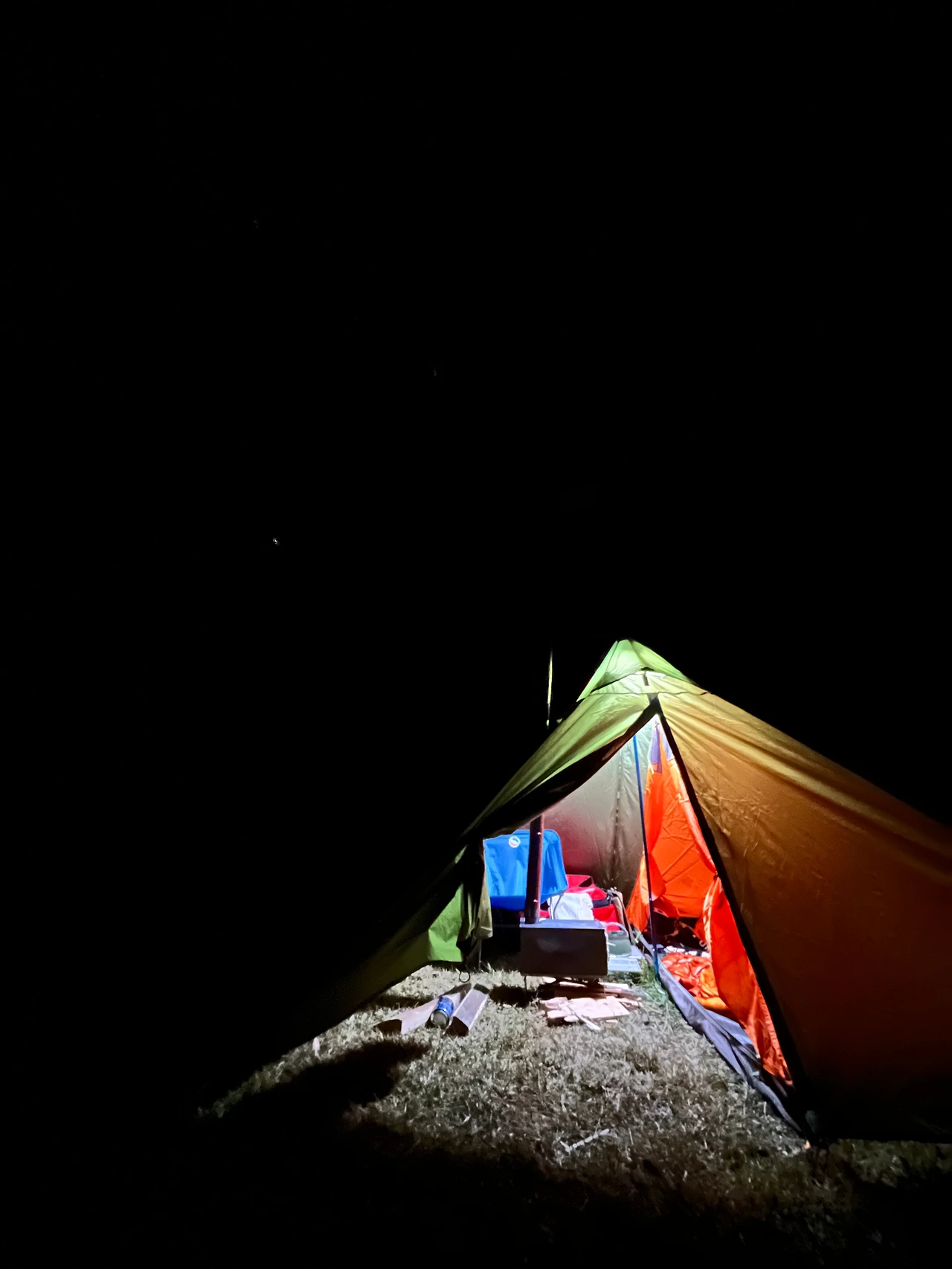도착한 첫날밤 날이 너무 어두워 급하게 사이트를 피칭했다. 이날 나는 빅 아그네스 Big Agnes에서 협찬받은 텐트와 기존 내 백패킹 세팅의 텐트 두 개를 들고 갔는데 좀 따뜻하게 자고 싶어서 럭스 아웃도어 미니픽에 화목난로를 설치했다. 와일드와일드웨스트의 W스토브를 가져갔고 처음으로 '잘 샀다'는 생각이 들었다.