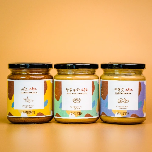 병에 담긴 땅콩버터, 아몬드버터, 캐슈넛버터였다.