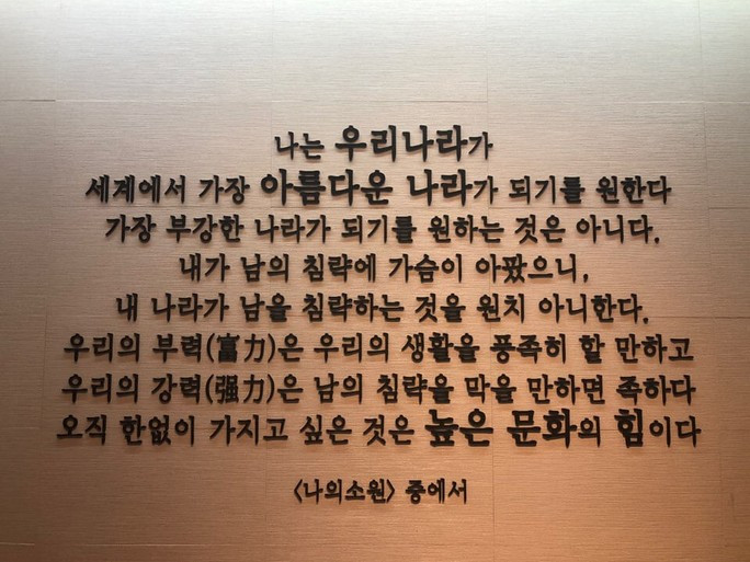 백범 김구 선생(1876 ~ 1946, 독립운동가)이 우리에게 던진 메시지가 있다. 바로 '높은 문화의 힘'이다.