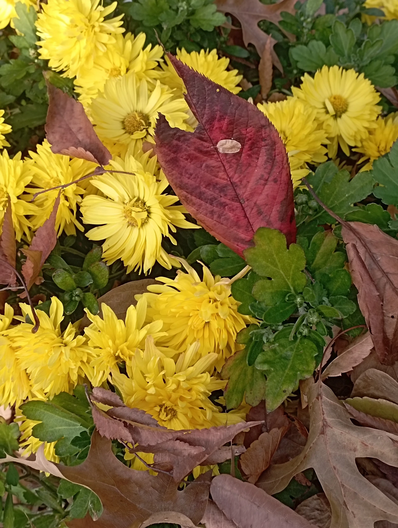 노란 국화와 친구 됐다.