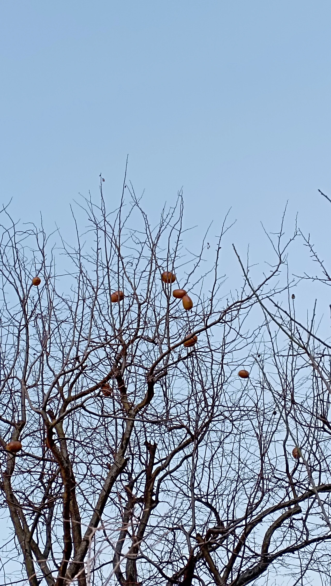 베란다에서 힘없이 나날을 견디는 화분을 모처럼 밖에 내놓았습니다. 모과나무 밑입니다. 잘 자라라고 물을 주고 거름을 주고 보살펴보지만, 모든 생물은 하늘의 손길만 못하다는 생각이 듭니다. 궁금한 마음에 아침 일찍 나무 밑으로 갔습니다. 흠뻑 빗물을 뒤집어쓴 잎줄기가 생기를 얻은 듯 반짝입니다. 윤이 납니다. 사철나무도 마찬가지입니다. 이들 나무의 정기를 얻었는지 모릅니다. 메말라 보이던 줄기와 가지가 푸른 기운을 보입니다. 다른 모과나무와는 달리 겨우내 아홉 개의 모과를 가지에 매달고 있었습니다. 그동안 보지 못했던 모습이니 신기하다는 생각입니다. 얼었다 녹았다 반복하는 동안 모과의 거죽은 노란빛에서 갈색으로 변했습니다. 언제까지 허공에 매달려 있을지 하는 궁금증이 일었습니다. 눈발이 비친 후로는 매일 나무를 바라보았습니다. 늘 아홉 개입니다. 아침에 보아도 저녁에 보아도 변함이 없습니다. 달이 밝은 한밤중에도 보았습니다. 새해가 바뀌고 정월이 지났습니다. 끈질긴 인연입니다. 이제는 바라보기를 포기하고 싶은 마음이 들었습니다.