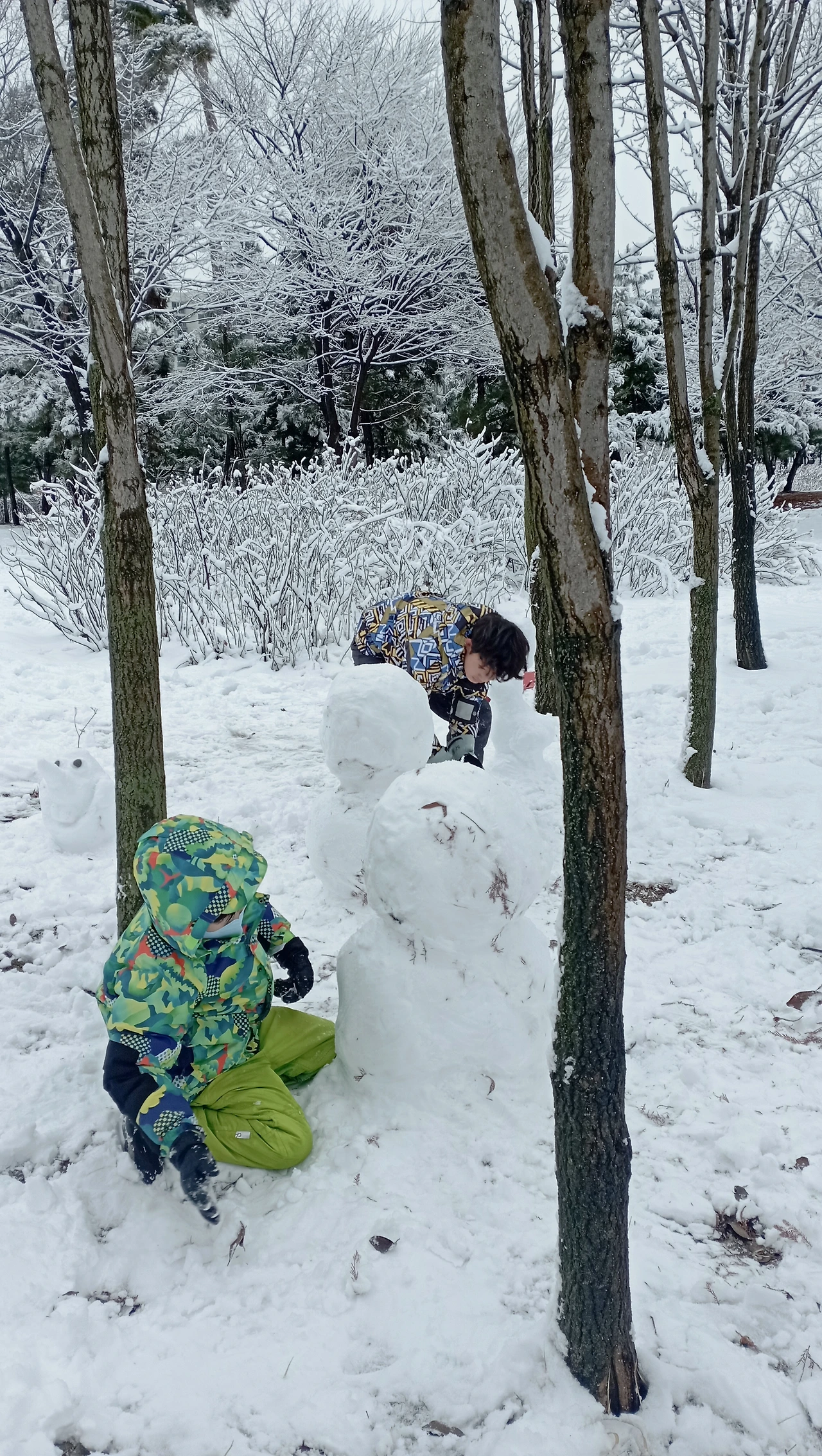 네 하는 짧은 대답을 내놓고 눈을 뭉치기에 여념이 없습니다. 어느새 눈사람이 다섯이나 우뚝 서있습니다. 크고 작고, 뚱뚱하고 홀쭉합니다. 형제는 각기 눈사람의 몸을 다듬기에 여념이 없습니다. 찰흙으로 인형을 만들 때의 모습이 연상됩니다. 옆에 빨간 눈썰매가 보입니다. 나는 동생에게 언덕에서 썰매 타는 모습을 찍고 싶다고 했습니다. 내 요구대로 가파른 언덕에서 타는 모습을 연출해 주었습니다. 오랜만에 눈사람, 눈썰매 풍경을 담았습니다. 앞으로 만들 그림책을 생각합니다. 외진 곳에 만든 눈사람, 오래가기를 기대합니다. 눈 오리까지 사진에 담았으면 좋으련만…….