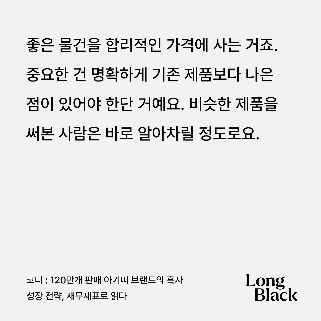 단순 불편함을 개선하는 것에 그치지 않았습니다. 좋은 물건을 합리적 가격에 제공하기 위해서 노력했죠.