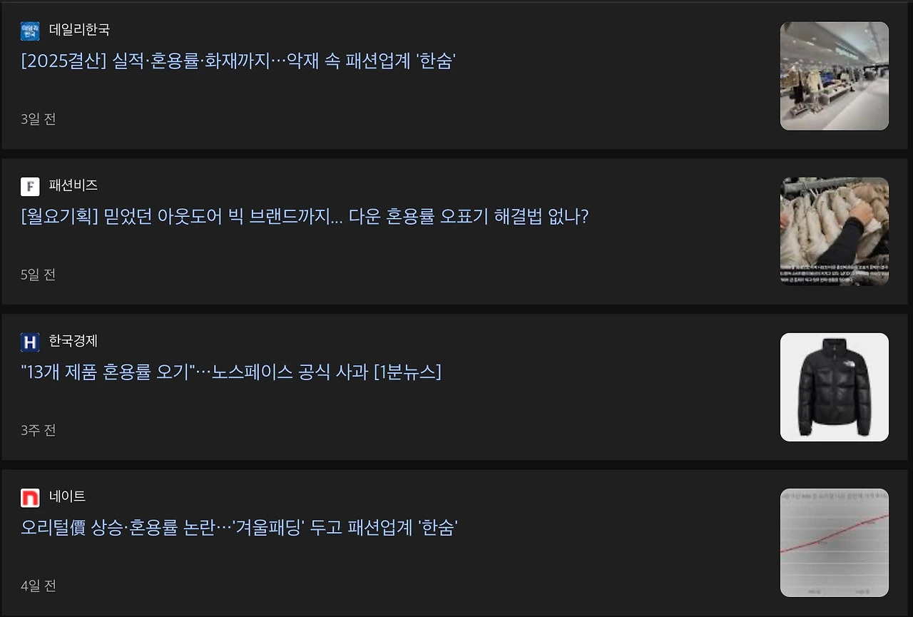내가 속한 업계는 의류, 아웃도어 업계이다. 경량 패딩이 갑자기 올해 트렌드가 되면서 가볍고 따뜻한, 다운 패딩에 대한 수요가 미친 듯이 증가했다. 그러면서 수면 위로 드러난 것이 혼용률 문제였다.