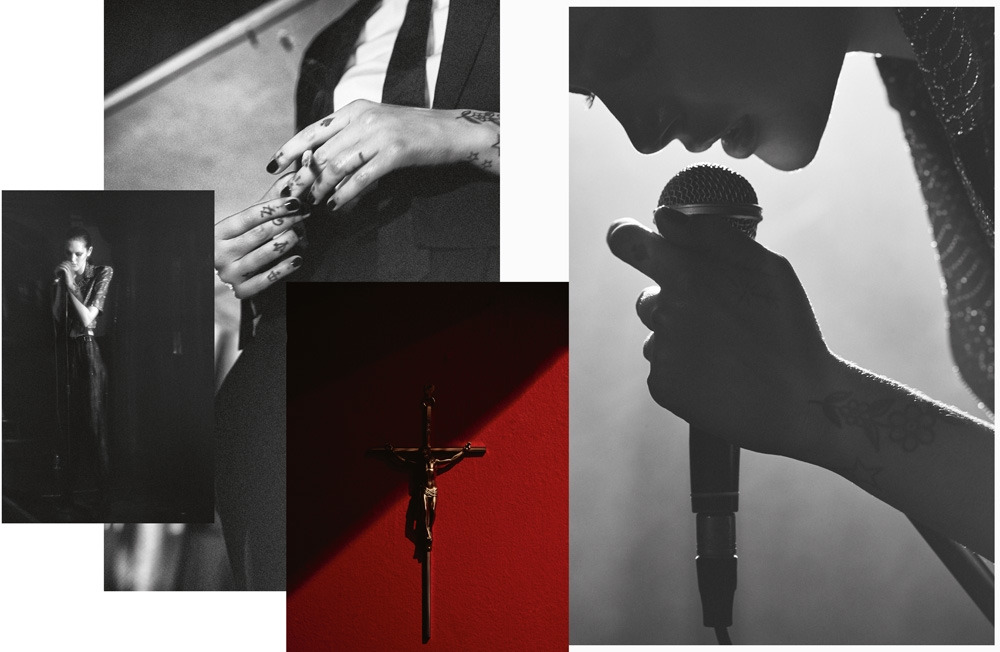 모델의 메이크업과 의상, 타투, 흑백 사진까지.
