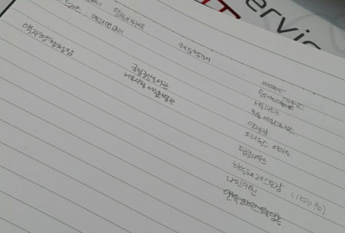 당시, 이리저리 찾아보면서 정리했던 후보군들. 연습장에 막 쓴 것이라 글씨가 엉망이다. 우리는 결국 이 안에서 골랐다. ⓒ과거 사진첩