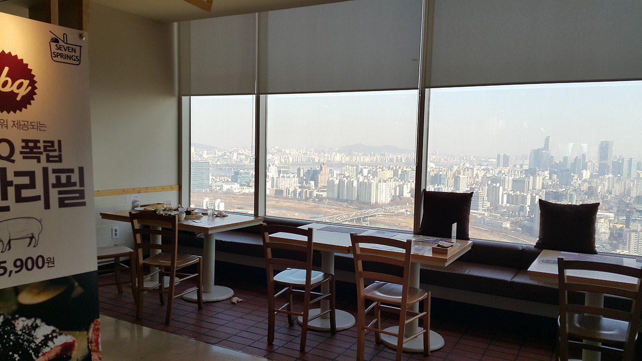 그 다음은 목동점 방문. 현대타워 41층, 한 층이 전부 세븐 스프링스인 그곳은, 들어가자마자 창 너머로 펼쳐지는 뷰에 감탄이 나오는 곳이었다. 360도, 사방 어디에서나 통유리로 서울 시내 뷰를 감상할 수 있고, 자리도 많고, 공간도 넓었다. 오히려 여기는 너무 커서 부담스러울 정도였다. 매장을 한바퀴 돌 수 있는 구조다 보니, 벽이 없었고, 결혼식 공간을 꾸미기가 애매한 것 같아서 일단은 확인 후 킵.