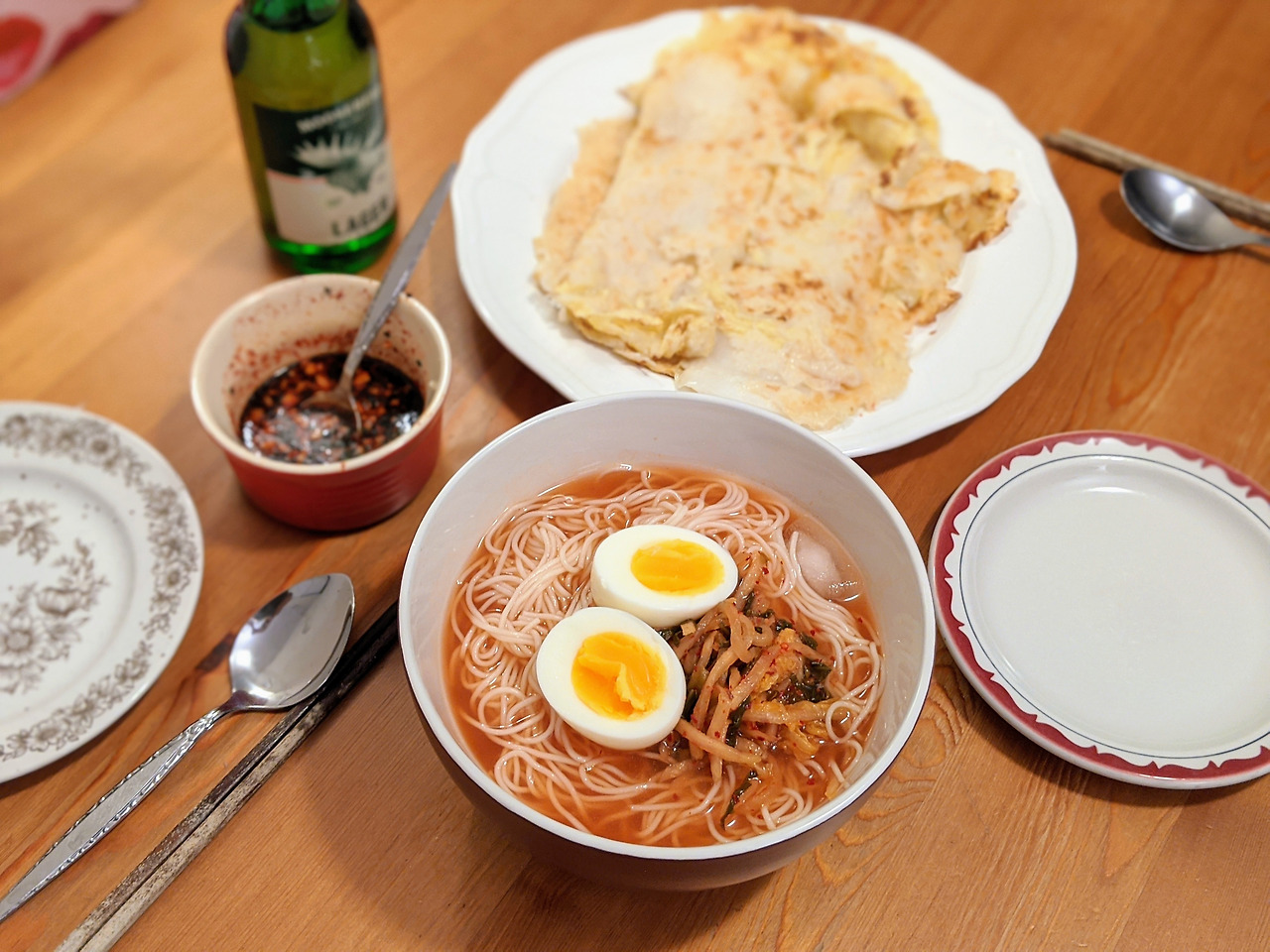 쉬면서 맛있는걸 부지런히 만들어 먹었다. 달달한 겨울 배추로 배추전을 부치고 냉면 육수로 간단한 김치말이 국수도 만들었다.
