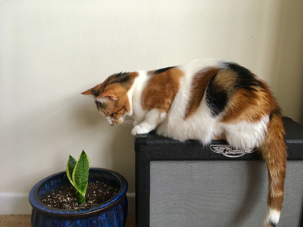 화초를 건드리면 그 화초는 켈리의 솜방망이가 닿지 않는 곳으로 옮겼습니다.
