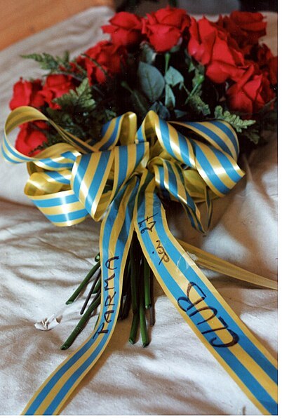 생가 2층에 있는 베르디가 쓰던 방, 침대 위에 장미 27송이. 리본에는 '파르마, 클럽 27'이라고 적혀있네요.