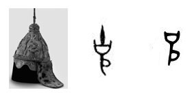 한편 하데스의 투구는 한자에도 나온다. 옛 고古라는 글자이다. 고古의 금문은 다음과 같다.