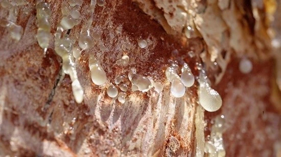 유향나무와 같이 수지를 흘리는 다른 나무들이 있는데, 이를 나타낸 글자가 나무이름 백柏이다. 이 나무들에서 흘러내린 수지는 땅 속으로 흘러 들어가 응고되는데, 백 만년이 지나면 돌덩이처럼 굳어서 옥이 된다. 이중에 푸른 빛깔을 띄는 것을 푸를 벽碧이라 하고, 노란 빛깔을 띄는 것을 호박 박珀이라 한다. 이 때 굳으면서 곤충이 딸려 들어가 화석으로 변하는 경우가 있는데 영화 [쥬라기 공원]에서는 이 화석에서 유전자를 채취하여 공룡을 부활시키는 장면으로 시작된다.