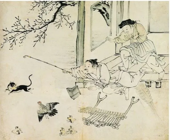 조선 후기의 화가 김득신(金得臣, 1754~1822)이 그린 파적도(破寂圖)이다.
