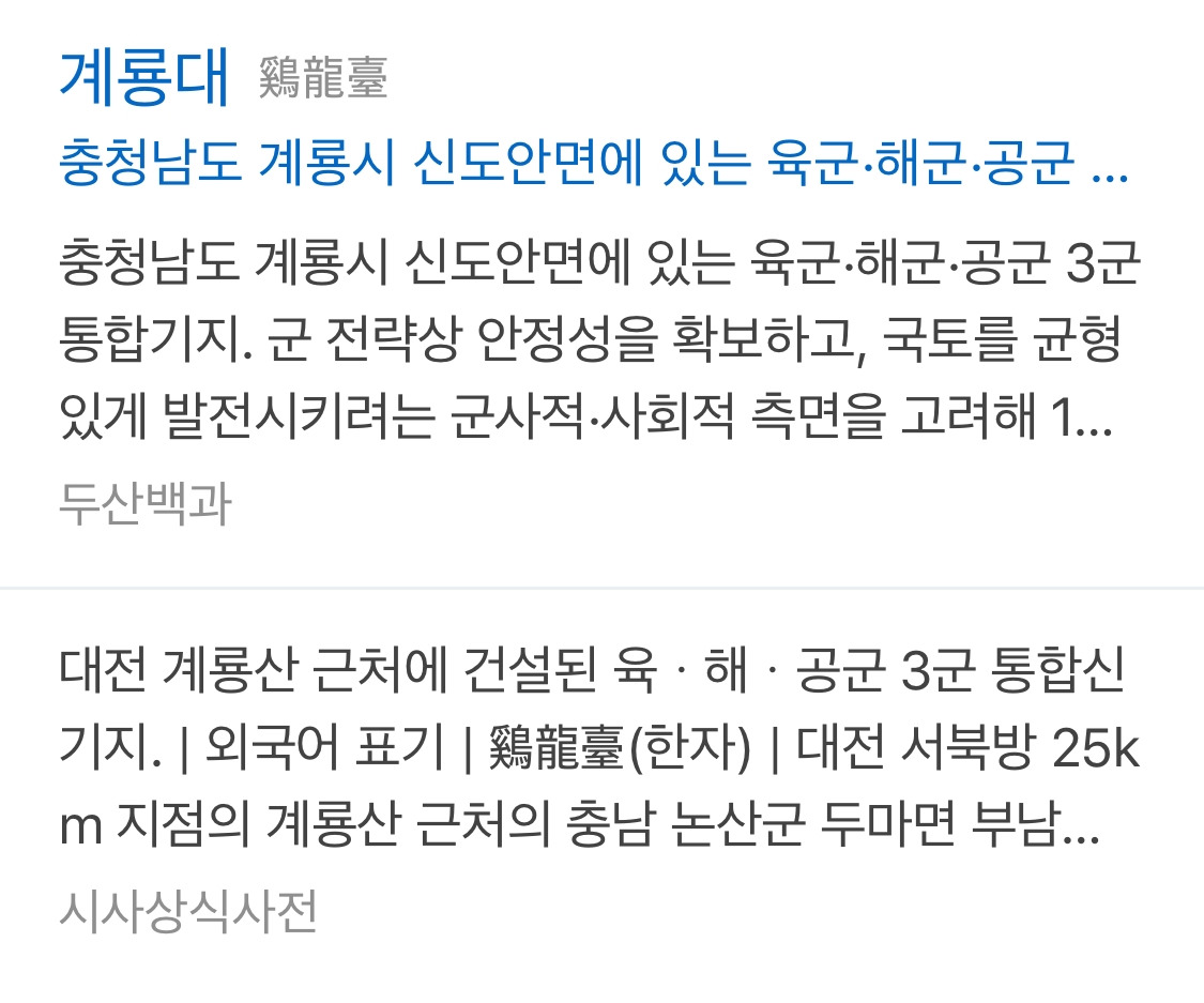 “계룡대가 어디야? 대학교 이름이야?”