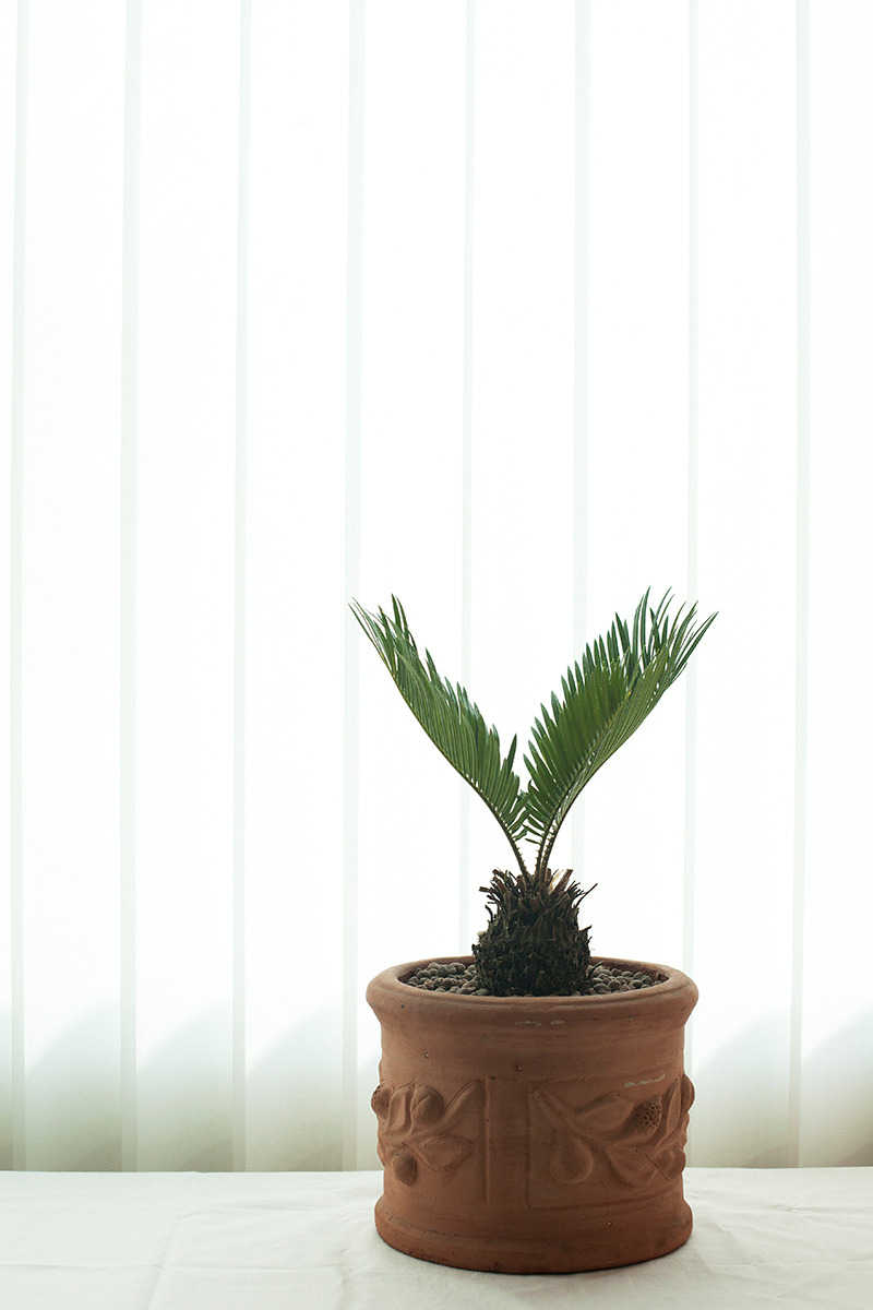 어찌 됐든 저에게 식물은 꽤 오랫동안 할머니의 취미, 할머니의 세상이었습니다. 어릴 적 할머니 댁에 가면 항상 엄청 심심했었드랬죠. 그때는 당연히 스마트폰 같은 것도 없었고 하나 있는 텔레비전은 외할아버지 차지였기 때문에 제가 할 일이 암 것도 없었지요. 그때 본 할머니의 식물들은 그때 제가 느꼈던 진한 지루함과 합쳐져 있습니다. 지금처럼 식물에 관심이 있었다면 꽤나 재밌는 시간을 보냈었을 수도 있는데 꼬맹이에게는 무리지요. 그 기억 속의 한 장면을 차지하고 있는 게 바로 이 소철입니다. 외할머니의 소철은 파란 물감으로 무언가 전통스러운 문양이 그려진 엄청 무거워 보이는 크고 둥그런 하얀 화분에 심겨 있었습니다. 흙 위로는 뚱뚱한 몸통이 자리 잡고 있고 그 위에서 솟아난 잎사귀는 꽤 뾰족해서 그 옆에서 놀다가 자주 찔리곤 했지요. 제 기억 속에 할머니는 종종 물뿌리개를 칙칙 뿌리고 정성스럽게 뾰죽한 잎사귀들을 닦아주셨습니다. 그래서 꽃집에서 이 소철을 봤을 때 어렸을 때 느꼈던 그 지루한 느낌이 왠지 따뜻하게 살아나는 듯했습니다. 외할머니는 벌써 돌아가신 지 꽤 되어서 할머니 정글의 화분들도 이제는 그리운 기억이 되어 버렸네요.