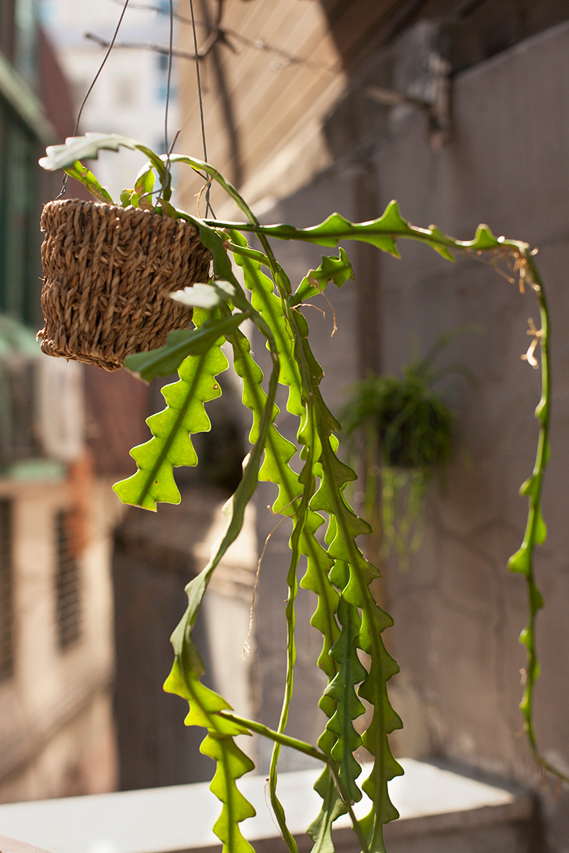 다양한 행잉플랜트 사진들을 보다가 가장 눈길을 끌었던 식물이 바로 이 아이입니다. 지그재그 모양의 잎사귀가 엣쥐, 그 자체입니다 ㅋㅋ 이름은 굉장히 어려워요. 크립토세레우스 안토니아누스 Cryptocereus anthonyanus 또는 셀레니세레우스 안토니아누스 Selenicereus anthonyanus입니다. 이름이 너무 어려운 덕분에 별명인 생선뼈 선인장(fish bone cactus), 지그재그 선인장(zig-zag cactus, rick rack cactus)으로 더 잘 알려져 있지요. 저 역시 그냥 생선뼈 선인장으로 부르겠어요 (생선뼈 선인장이라는 같은 별명을 가진 비슷하게 생긴 또 다른 식물들이 있더라구요. 기회가 되면 얘네들도 만나서 촬영해서 소개해 드리도록 하겠습니다.) 가시가 없이 잎이 늘어지는 아이인데 별명에서 볼 수 있듯이 선인장 가족에 속하고 또 난하고도 사촌이라고 해요. 난선인장(orchid cactus)이라는 별명도 있대요. 저에게 난은 야들야들 우아한 이미지이고 선인장은 튼튼하고 빵빵한 느낌인데 이 둘의 만남이라니 역시 독특하지용. 키울 때는 난 키울 때처럼 키우는 게 좋다고 합니다.