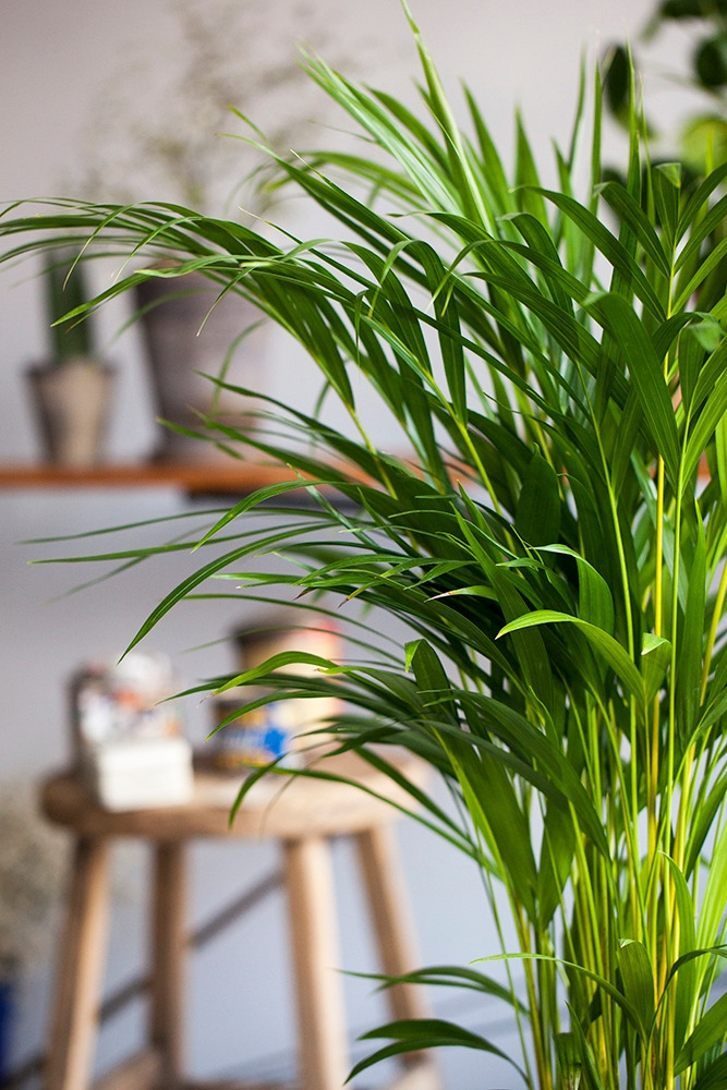 아레카야자(Chrysalidorcarpus lutescens)는 순위에서 항상 1,2위를 차지하는 공기정화 식물계의 엘리트입니다. 잎의 모양 덕분에 시원하고 이국적인 분위기를 풍겨 인기가 많죠. 나비 날개처럼 양쪽으로 촥 펼쳐지며 자라서 영어로는 butterfly palm 이라고도 한대요. 빛이 많은 것을 좋아하지만 직사광선은 피해 주시는 게 좋구요, 온도는 따뜻한 것을 좋아합니다. 10도 이상이면 겨울도 잘 난다고 하니 실내에 놔주면 안전할 것 같습니다. 물을 좋아하고 건조한 걸 싫어하니까 생각날 때마다 눈에 띌 때마다 분무기로 잎에 촥촥 물을 뿌려주면 좋다고 해요. 화분의 흙이 마르면 흠뻑 물을 주는 게 좋구요. 누래진 잎이나 가지가 보인다면 빨리빨리 잘라 줘야 한대요. 테이블 야자와 헷갈리기 쉬운데, 테이블 야자도 공기정화능력이 있기는 하지만, 아레카 야자가 더 뛰어난 모양이에요. 테이블 야자는 키가 좀 더 작고 잎이 어긋나서 나며 살짝 뒤로 말리는 느낌이 나고 아레카 야자 잎은 마주나고 쭉쭉 뻗은 느낌이 나요.