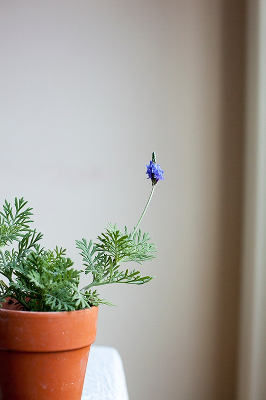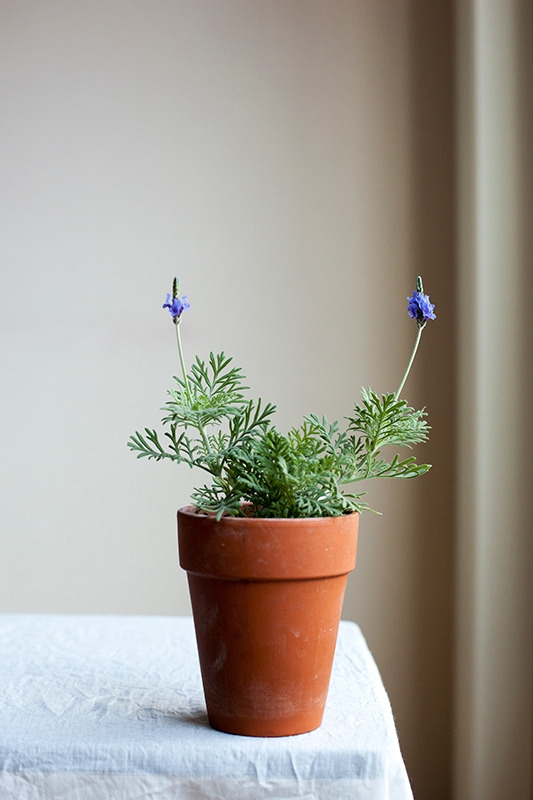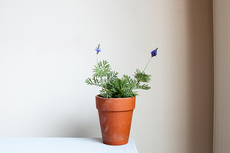 사진 속 라벤더는 비교적 쉽게 볼 수 있는 피나타 라벤더예요. 아름다운 잎 모양 때문에 레이스 라벤더라고도 합니다. 라벤더를 키우면서 진짜 라벤더 향을 맡을 수 있으면 좋을 것 같다는 기대로 라벤더를 데려왔지만 저의 꿈은 금세 산산조각이 났습니다. 봄이 오면 꽃집마다 가득한 라벤더라 그리 키우기 어려울 것이라 생각하지 못했는데 저희 집에 와서 사진을 찍고 며칠 지나지도 않아 예쁜 보라색 꽃들이 작별인사를 건넸고 레이스같이 섬세한 모양의 잎들도 곧 따라 떠났지요. 물의 양이 안 맞았던 걸까, 빛이 부족했나, 비료를 줬어야 했나, 처음 심겨올 때부터 약한 아이였던 걸까, 속사정을 알길 없는 초보라 애를 태웠죠. 끝이 안 보일만큼 들판 가득 심겨 야외에서도 잘만 자라는 라벤더 사진을 보면 야속한 마음이 들지만, 어쩌면 그게 이유일 수도 있습니다. 자연의 품 만한 게 없는 거죠. 야외에서 자라는 것이 일반적이므로 최대한 원래 자라는 곳의 환경과 비슷하게 해 주는 게 중요합니다.