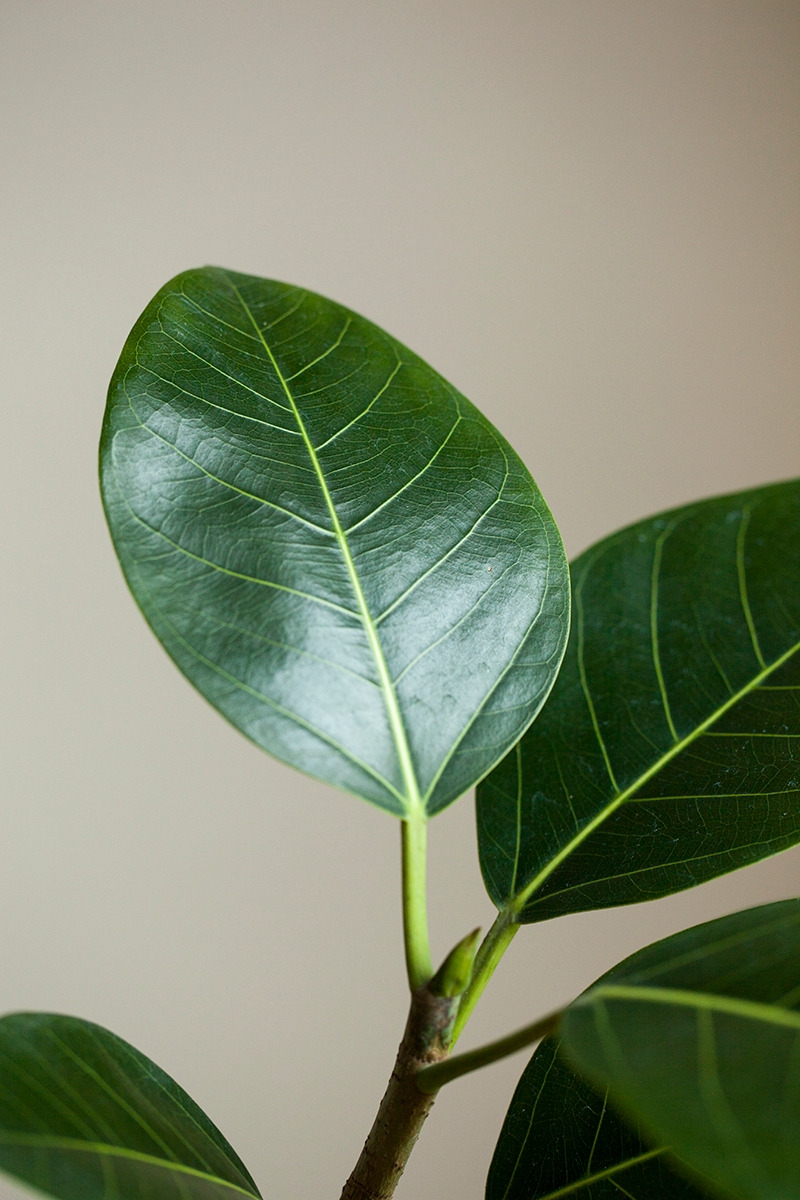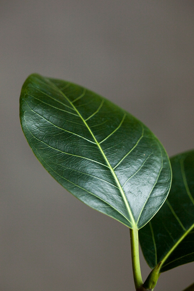 저는 뱅갈 고무나무 잎의 모양과 샛노란 잎맥을 무척 좋아합니다. 독특하고 신기한 모양의 잎들도 좋지만, 이렇게 어린아이가 크레파스로 그린 듯이 정직한 모양은 오히려 단순하고 담백한 맛이 있습니다. 뱅갈 고무나무처럼 잎이 큰 편인 식물들은 특히 물에 젖은 채로 직사광선을 쬐는 것을 조심해야 합니다. 잎 한 장에 상처가 나는 것의 피해가 꽤 크니까요. 잎이 단단하고 환경에 예민하지 않아서 믿음직하지만, 이렇게 튼튼하다고 소문난 식물들이 제 품에서 기력을 잃으면 마음이 더 아픕니다. 아이들 그림 속 나무를 닮은 뱅갈 고무나무의 순진한 얼굴을 보면 언제 어떤 물을 주면 가장 좋아할 지도 챙겨주고 싶어 집니다. 삐뚤 빼뚤한 아이들 그림을 소중히 냉장고에 붙여 놓듯 고이고이 잘 지켜주고 싶은 잎 모양입니다.
