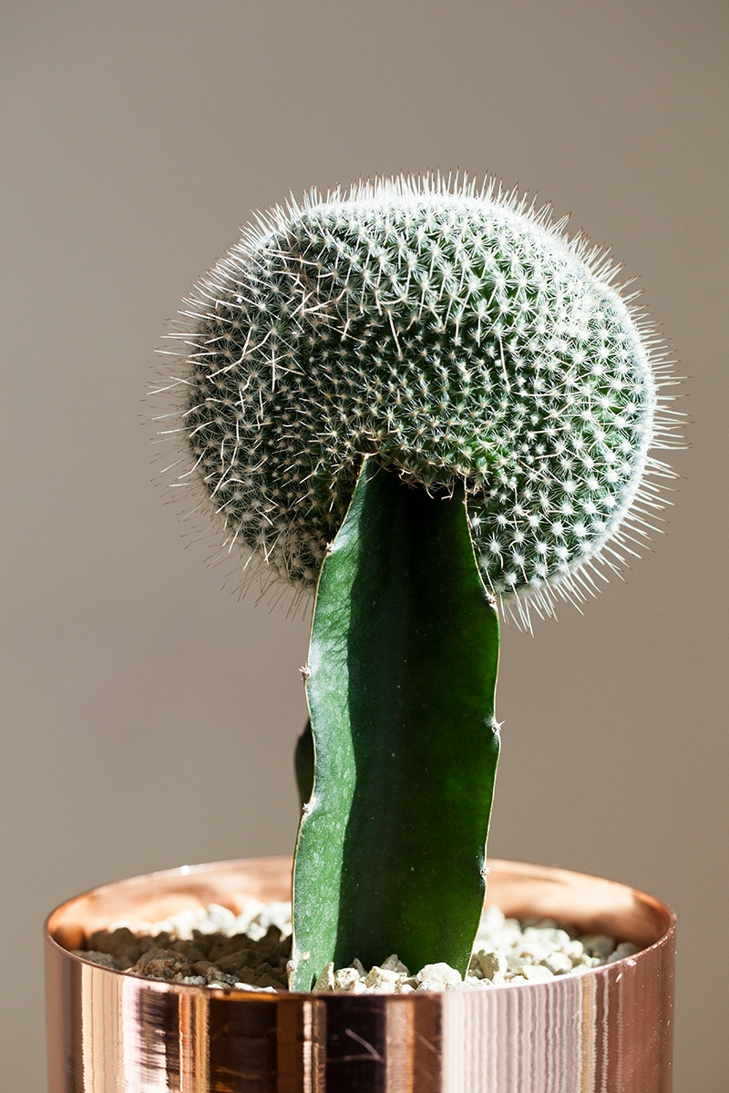 원래 접목 기술은 뿌리가 약하거나 환경에 적응하지 못한 선인장들의 생명을 늘리기 위해 시도된 기술인데 지금은 독특한 모양 때문에 유행이 되어 여러 선인장들에 시도되고 있습니다. 아래쪽의 선인장이 위에 붙일 선인장보다 더 강해야 접목 후에도 살 수 있어 주로 원기둥 모양의 튼실한 선인장인 세레우스(체레우스, 케레우스)속, 에키노칵투스속, 에스포스토아속 선인장을 아래쪽 선인장으로 많이 사용한다고 합니다. 접목된 선인장은 아래쪽 선인장의 특성에 맞춰 키워주면 된다고 해요.