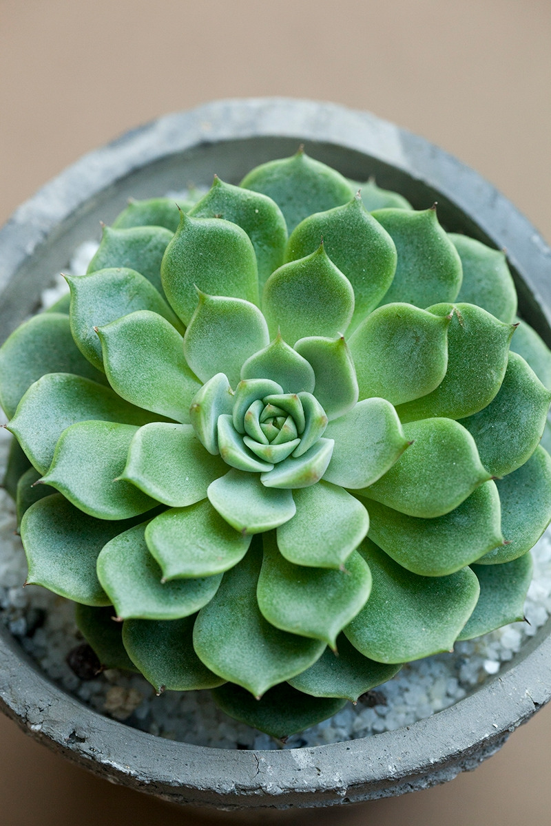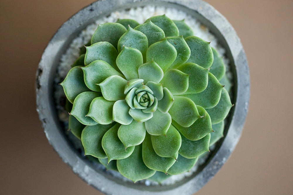 에케베리아처럼 줄기가 길게 올라오지 않고 잎사귀들이 땅에 붙어서 원에 가까운 모양으로 자라는 형태를 로제트형이라고 하는데, 거의 완벽한 방사형으로 자라는 이 에케베리아의 모습을 보면 사실 이름이야 뭐가 됐든 상관없다는 생각도 듭니다. 하지만, 이름을 알기 위해 비슷한 아이들과의 미세한 차이를 찾다 보니 ‘이건 잎끝이 이렇게 생겼었구나’, ‘잎 위에는 하얀 점들이 박혀있구나’ 하고 그 전에는 보이지 않던 특징들이 눈에 들어옵니다. 인간이 붙여준 이름보다 사실은 더 중요한 식물의 특징들이지요. 이런 조그만 특징들 때문에 이 작은 식물은 너무나 비슷하지만 사실은 다른 에케베리아속 식물들과 구별되는 고유한 존재가 됩니다. 그래서 비록 이름 찾기의 여정이 험난하기는 해도 저에게는 식물을 사랑하는 하나의 중요한 방법이기도 합니다. 혼돈의 에케베리아지만 그러거나 말거나 미스터리 속 잎사귀들은 아랑곳 않고 오와 열을 맞춰 가지런하기만 합니다. 이름이 뭐가 됐든 사방으로 정갈하고 소복한 모양이 탐스러운 건 변함이 없습니다.