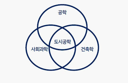 이렇게 복잡하고 종합적인 학문을 설명하기 위해서는 연관 학문을 고루고루 설명하며 도시공학의 역사를 하나나 둘 되짚어보며 이야기해볼까 한다. 우선 도시공학 개념은 크게 세 가지 연관 분야를 가지고 다닌다. 위 벤 다이어그램은 과 학생회장으로 활동하던 시절 학생들에게 쉽게 설명하고자 만들었다. 아마 전공을 배우는 과정에서도 3가지 분야와 연관성을 떼려야 뗄 수 없다는 것을 깨달을 것이다. 저 세 학문은 쉽게 생각해서 도시공학의 엄마, 아빠, 형제자매로 생각해도 문제없다.