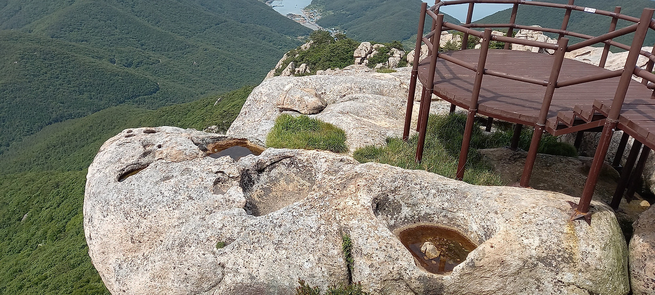 다행히 그날은 관광객이 드물어 한산했다. 상사바위 정상 부분이 쇠말뚝 대신 나무 데크로 조성돼 있어 놀랐다. 나는 그 위를 뚜벅뚜벅 걸으니, 경쾌한 울림이 다리를 타고 올라왔다.