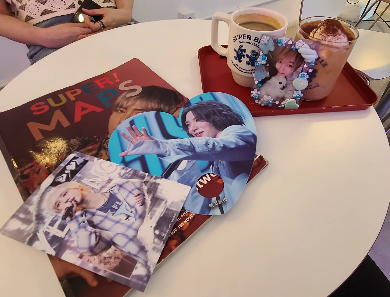 잡지도 보고 가지고 온 포카 꺼내서 인증샷 찍고