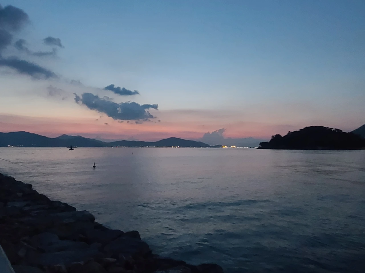 남해 밤바다의 바람이 살랑살랑 뺨을 스쳤다.