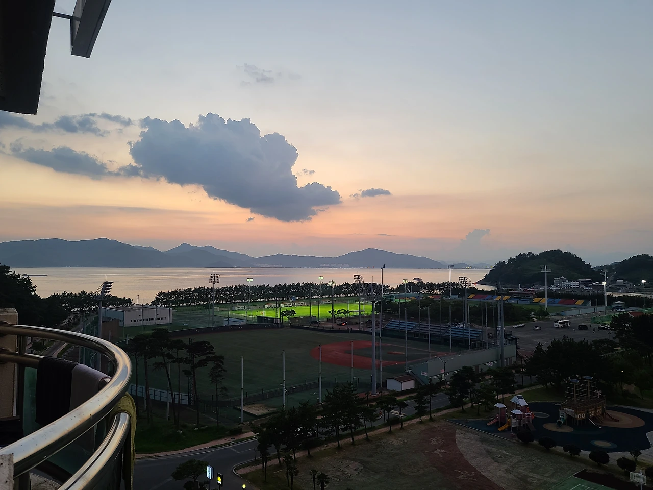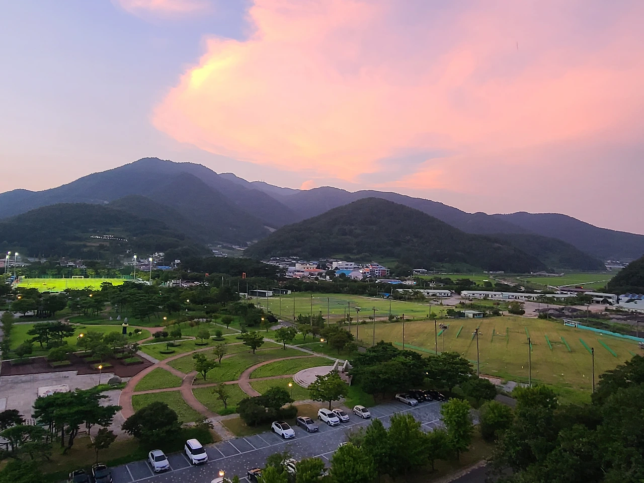핑크빛 노을이 그림같이 아름답게 걸려있었다.