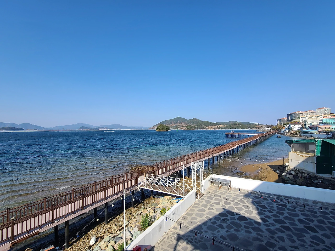 숙소 앞 해안산책로에 뛰쳐나갔다.