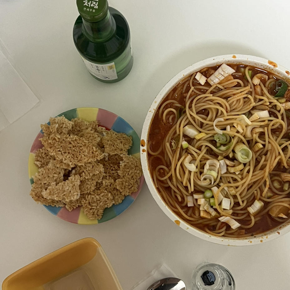 걸쭉하고 매콤 달콤한 토마토 해장 파스타 완성! 완전한 술안주로 먹고 싶다면 물을 조금 더 넣어 끓이고, 파스타 면은 생략하면 좋다. 바게트 빵을 구워서 찍어먹어도 좋을 것 같다. 나는 집에 있는 누룽지를 뿌셔서 같이 먹었는데 술이 술술 들어가더라... 이노무 술! 이건 뭐 해장 파스타가 아니라 술을 부르는 파스타로 이름을 바꿔야겠다.