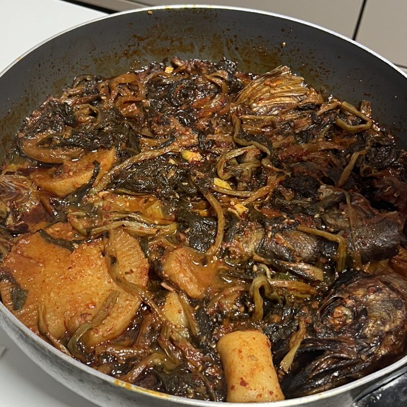 시래기 좋아하는 딸내미 많이 먹으라고 시래기를 아주 듬뿍 넣어주셔서 끓일 때 시래기를 먹기 좋게 잘라줬다. 한 컵 넣음 물이 코다리 양념과 잘 섞여 자박자박한 형태를 갖추면 완성! 다른 반찬은 아무것도 필요 없다. 흰쌀밥만 있으면 끝!