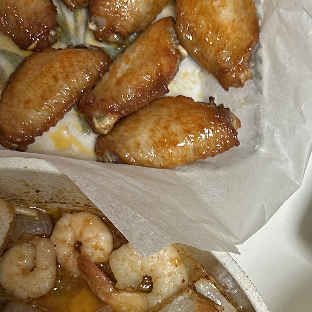 감바스를 만드는 동시에 버팔로윙을 예열한 에어프라이에 넣고 200도에 7분, 뒤집어서 5분 구워주면 완성! 겉을 더 바삭하게 굽고 싶으면 1-2분 더 돌리면 된다. 나는 껍질이 바삭한 걸 좋아해 껍질을 나중에 굽고 껍질 색을 보면서 더 구워준다.