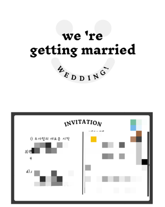 앞서 말했다시피 결혼을 하기로 마음먹은 후 모든 것이 빠르게 진행됐다. 아빠의 정년퇴직 전에 결혼을 하고자 했기 때문에, 상견례 후 결혼식까지 약 4개월 남짓. 곧바로 웨딩플래너와 계약하고 척척척 결혼식을 준비했다. 식장에 스드메, 신랑 예복까지 일사천리로 진행했고 가족, 지인들에게 결혼 소식을 전할 청첩장이 남은 상황이었다.