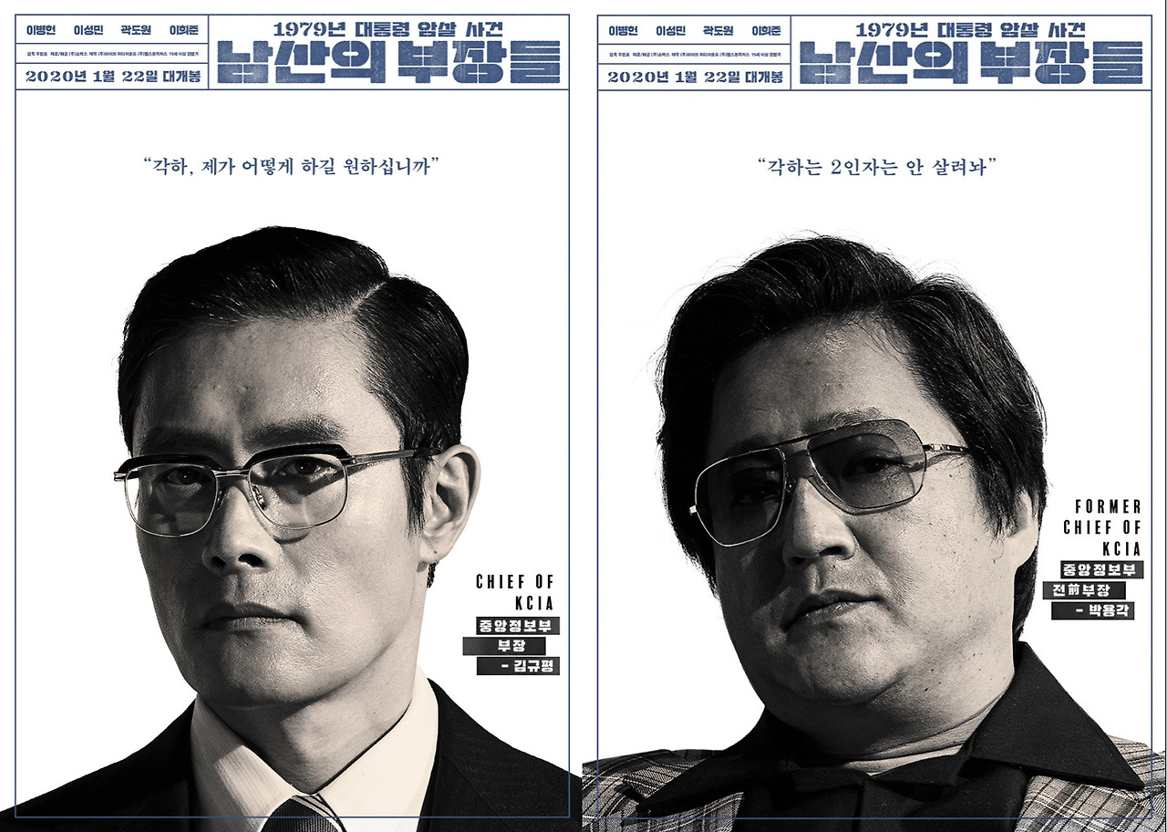 10·26 사태라 불리는 우리 역사의 한 장면, 1979년에 일어난 대통령 암살 사건이 ‘남산의 부장들’로 재탄생했다. 물론 작품 속에서 각하 ‘박통’(이성민)을 제외한 실제 인물의 이름들은 조금씩 변화를 맞는다. 당시 박통을 저격했던 중앙정보부장 김재규는 ‘김규태'(이병헌)가, 그가 함께 죽였던 경호실장 차지철은 ‘곽상천’(이희준)이, 전 중앙정보부장 김형욱은 ‘박용각’(곽도원)이 되어 실제 역사와 약간의 거리감을 갖는 것이다. 덕분에 이야기는 좀 더 자유롭게 인물의 심리를 넘나든다.
