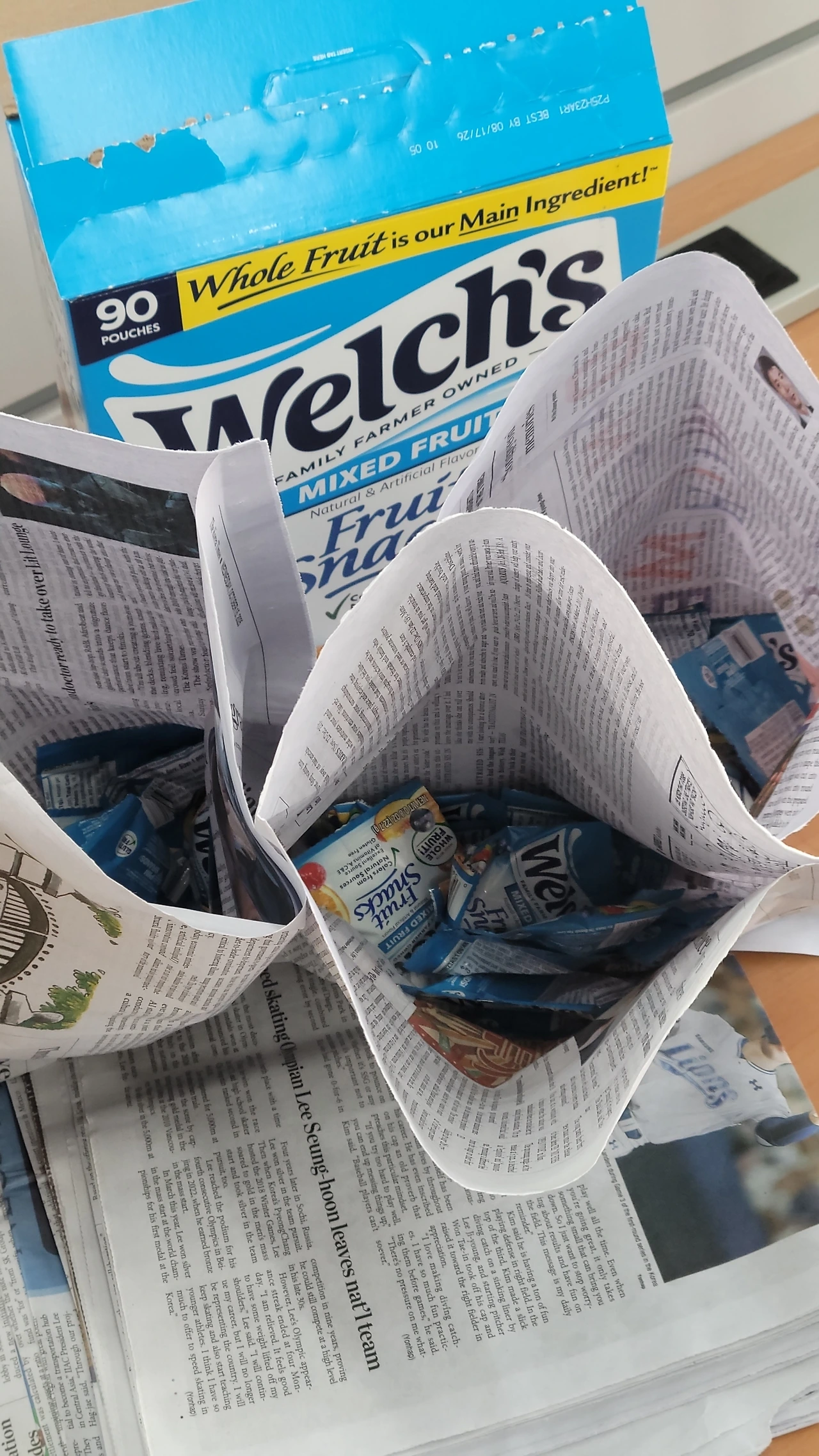 신문을 얻어다가 풀칠을 해서 대봉투를 만들었다.