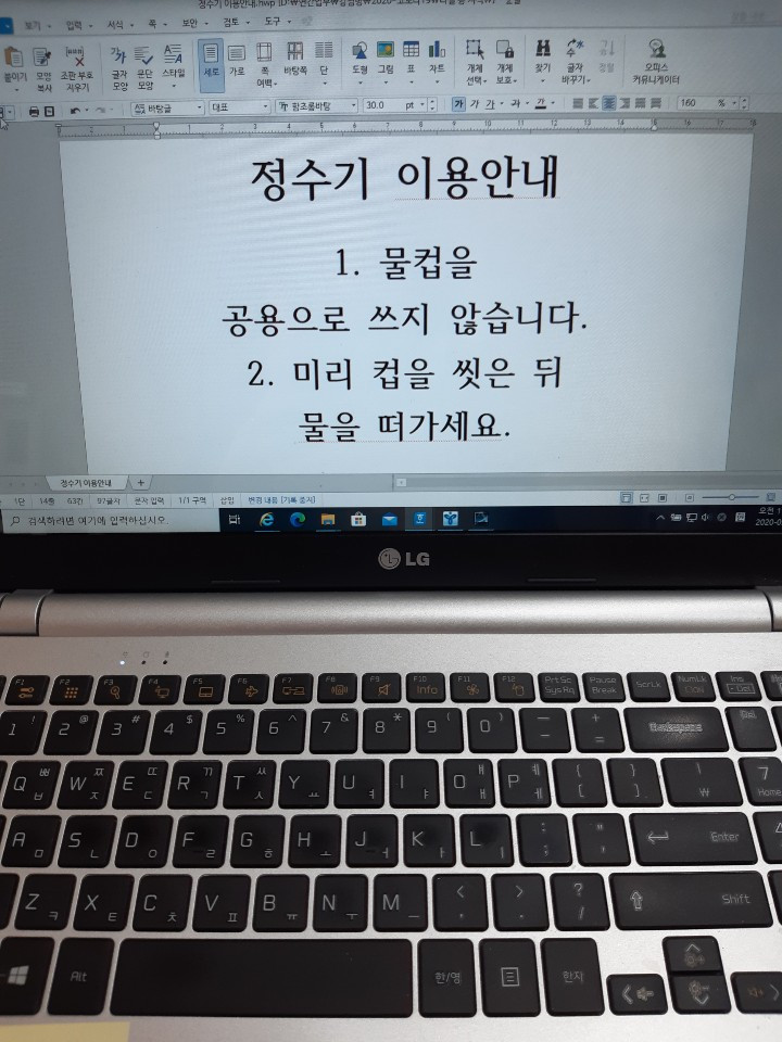 선생님이 이렇게 써서 정수기마다 붙여두었는데 또 개학이 연기되었어요. 아, 너무 슬픕니다..