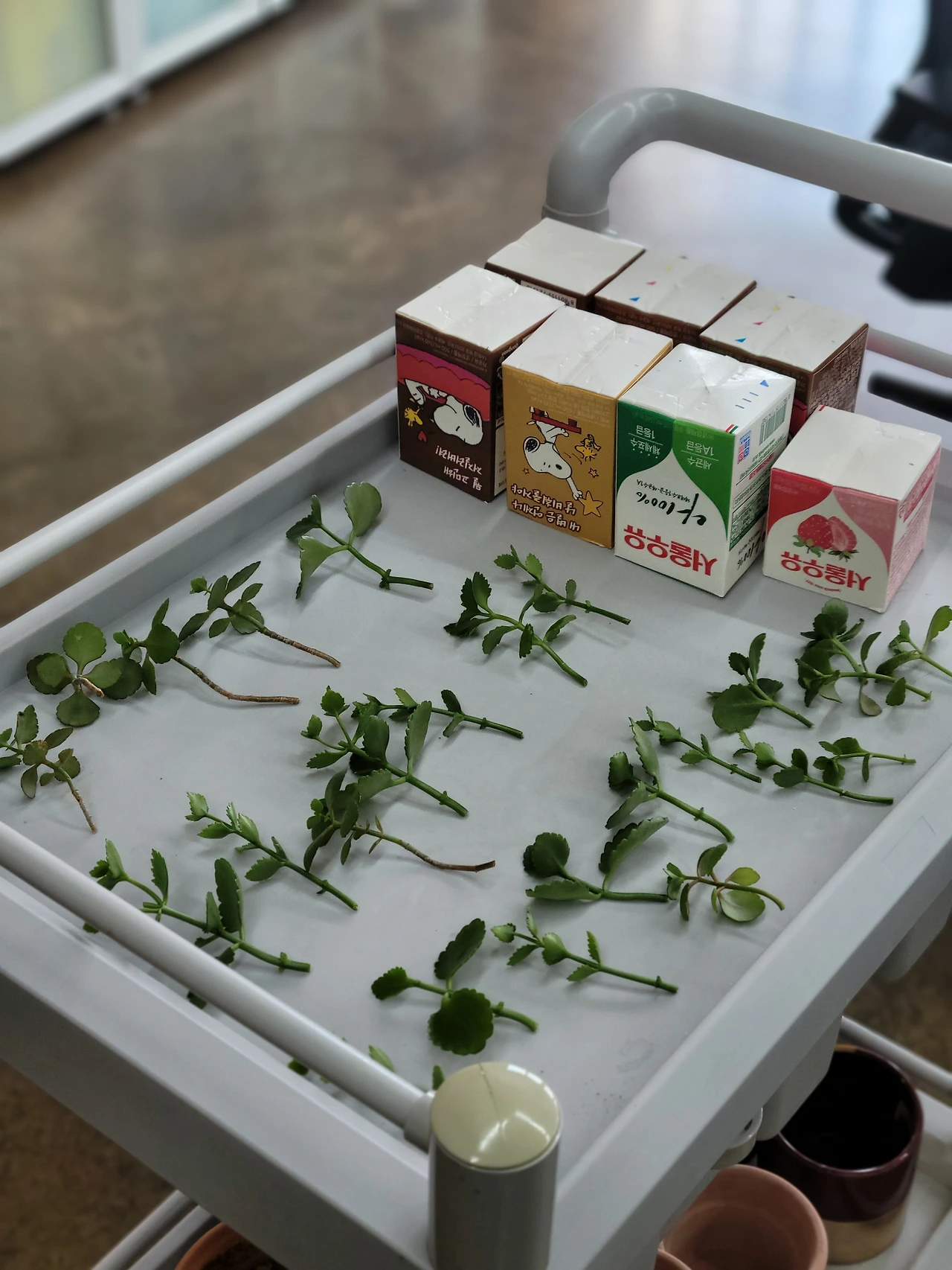 애들이 버린 우유곽을 모아서 깨끗이 씻어두었다.