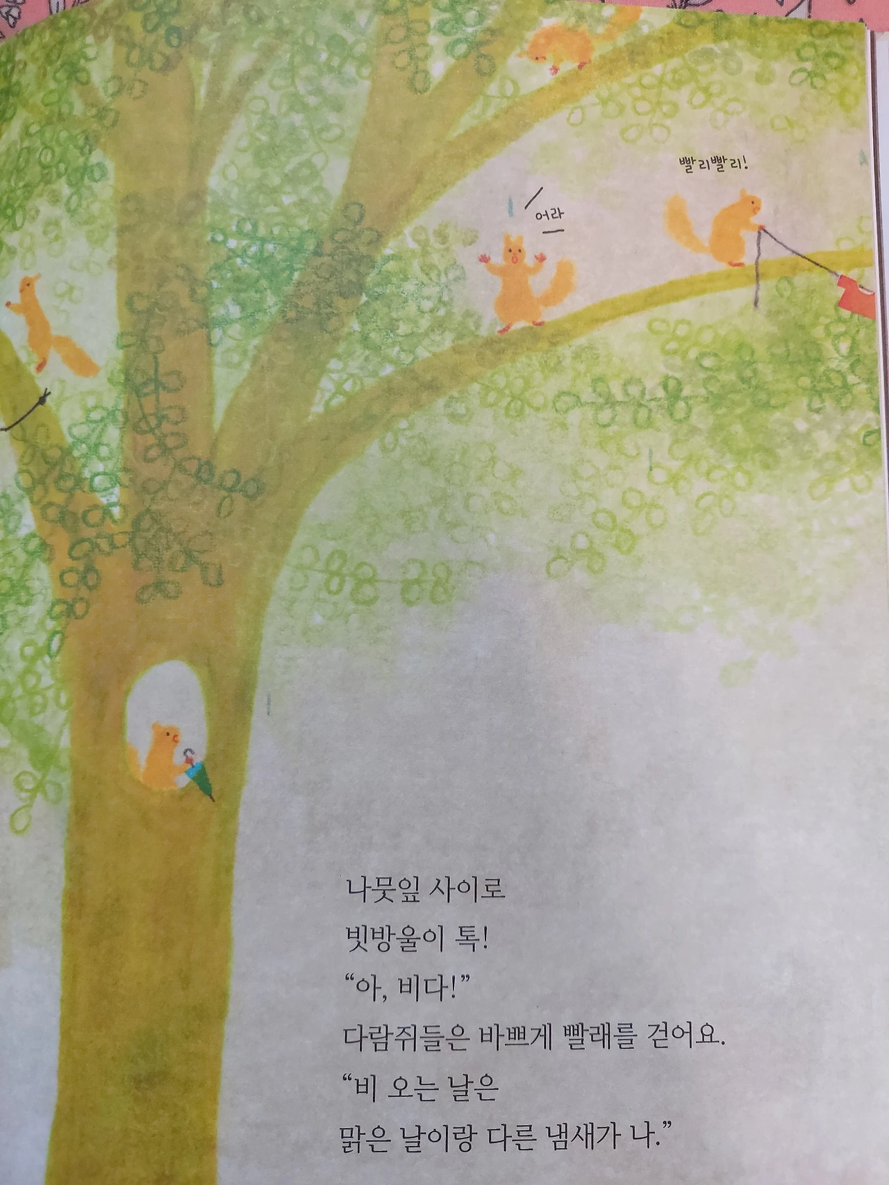 “비 오는 날은 정말 즐거워요. 예쁘고 신기하고 촉촉한 비 냄새가 나요.”
