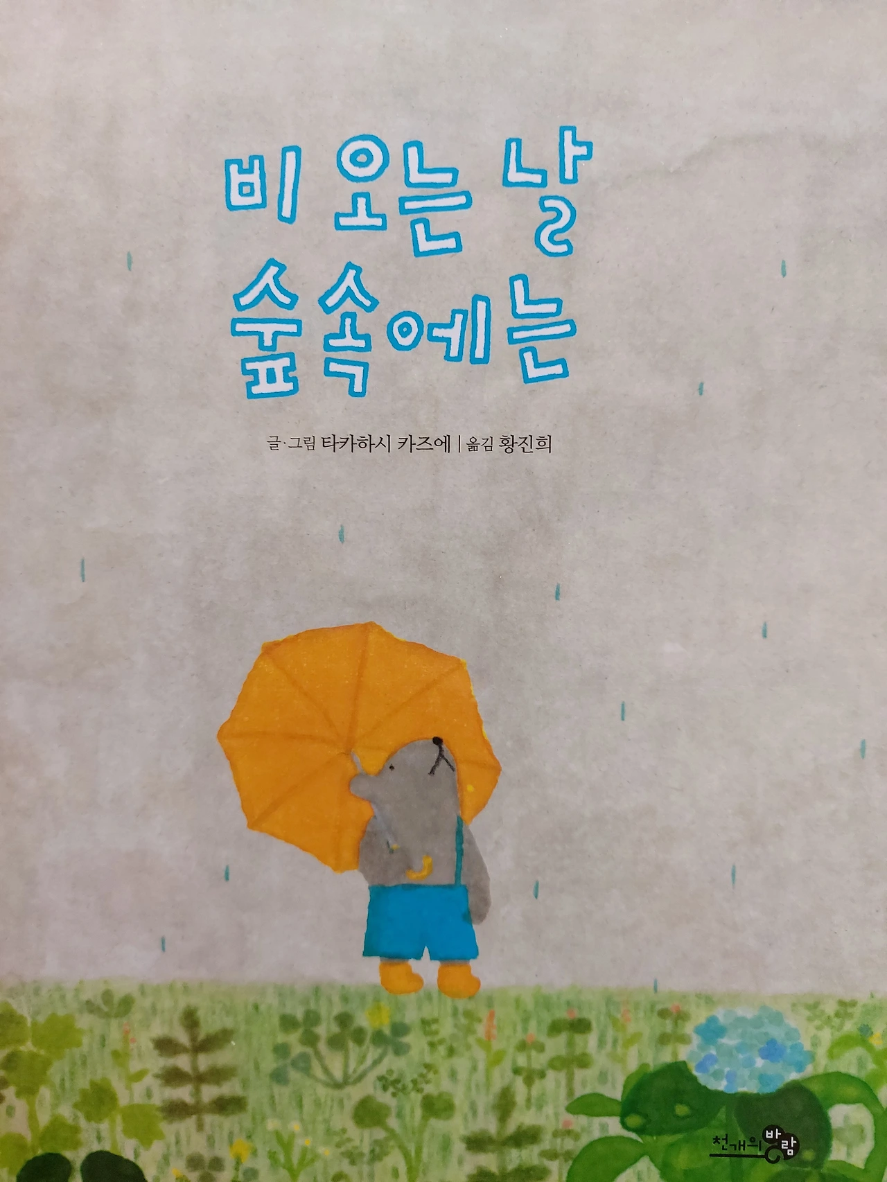 비 오는 날을 떠올리게 하는 그림책이 있다. 나는 비 오는 날을 좋아한다. 소나기가 한 여름날 시원하게 투둑탁탁 창문을 때리며 내리는 소리가 좋고, 잔잔하게 안개처럼 살며시 내리는 비도 좋아한다. 비가 내리고 잠시 멈추었을 때 희뿌연한 안개 사이로 보이는 풀잎들, 나뭇가지 들이 좋다. 그리고 숲을 거닐면서 맡아보는 비 오는 날 자연의 향기가 더 없이 참 좋다.